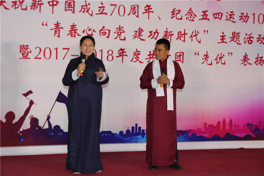 表扬会结束后开展了 “青春心向党 建功新时代”主题文艺汇演。全院各分院(研究所)青年积极参与到活动中,共同围绕主题呈现了一台积极正能量的文艺演出,各单位选送的节目精彩纷呈,有歌曲、舞蹈、诗朗诵、小品、相声等,广大青年科研工作者用饱满的热情和良好的精神面貌表达了庆祝祖国70华诞,纪念五四运动100周年的喜悦之情。