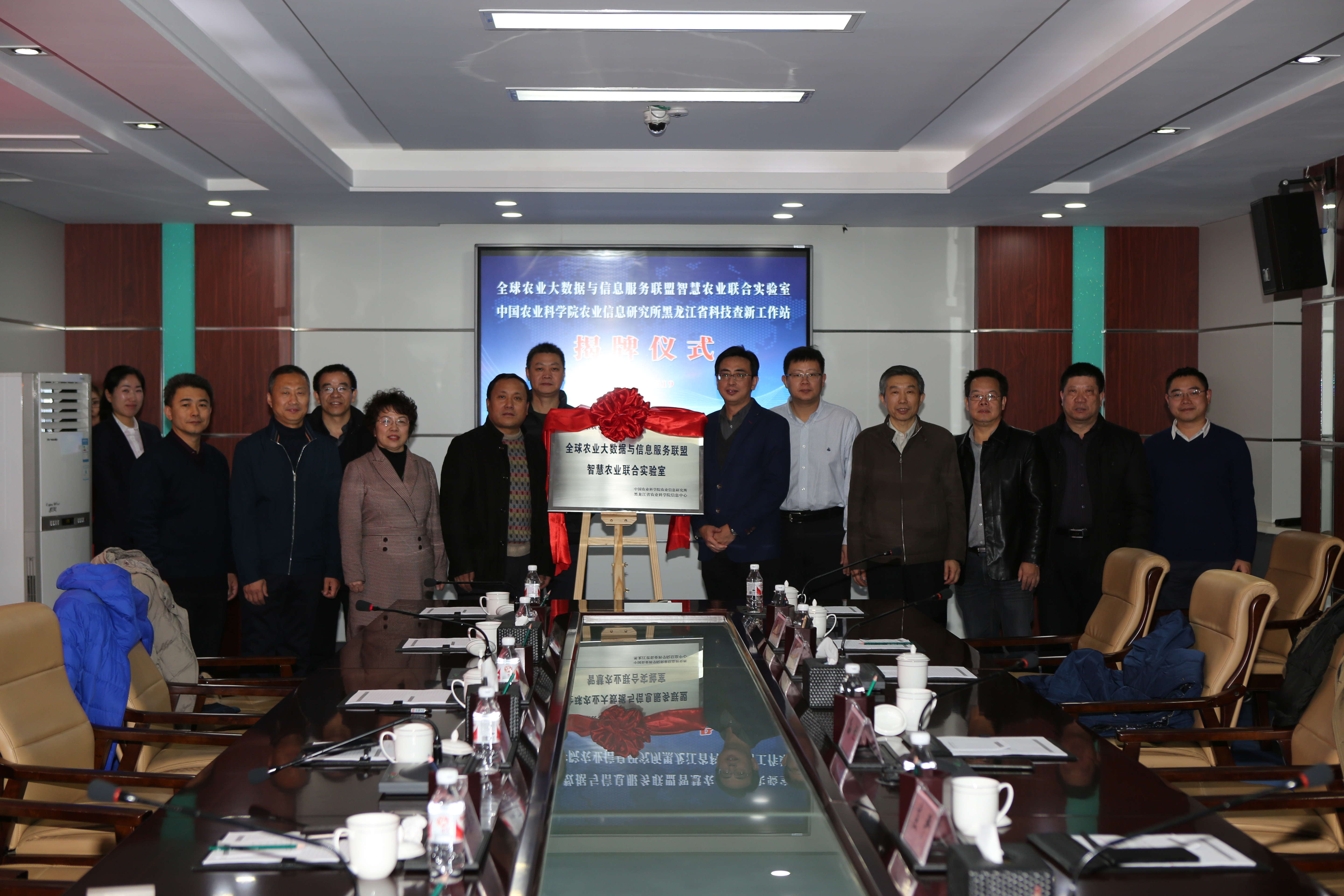 1月5日,借全球农业大数据与信息服务联盟召开座谈会之际,由中国农科院信息所发起,联合全国12个省共同组建的智慧农业联合实验室在成人网站 信息中心挂牌!同时中国农业科学院农业信息研究所科技查新(国家一级查新)黑龙江省查新工作站也在信息中心同时揭牌启动。中国农科院信息所所长孙坦,中国农科院科技局协同创新处副处长庄严,中国农科院农业信息所副所长周国民、聂凤英,全球农业大数据与信息服务联盟常务副事长孟宪学,黑龙江成人网站 副院长来永才、信息中心主任毕洪文及在哈出席全球农业大数据与信息服务联盟座谈会的全国各兄弟院所领导近百人出席揭牌仪式。揭牌仪式由黑龙江成人网站 科研处处长柴永山主持。
