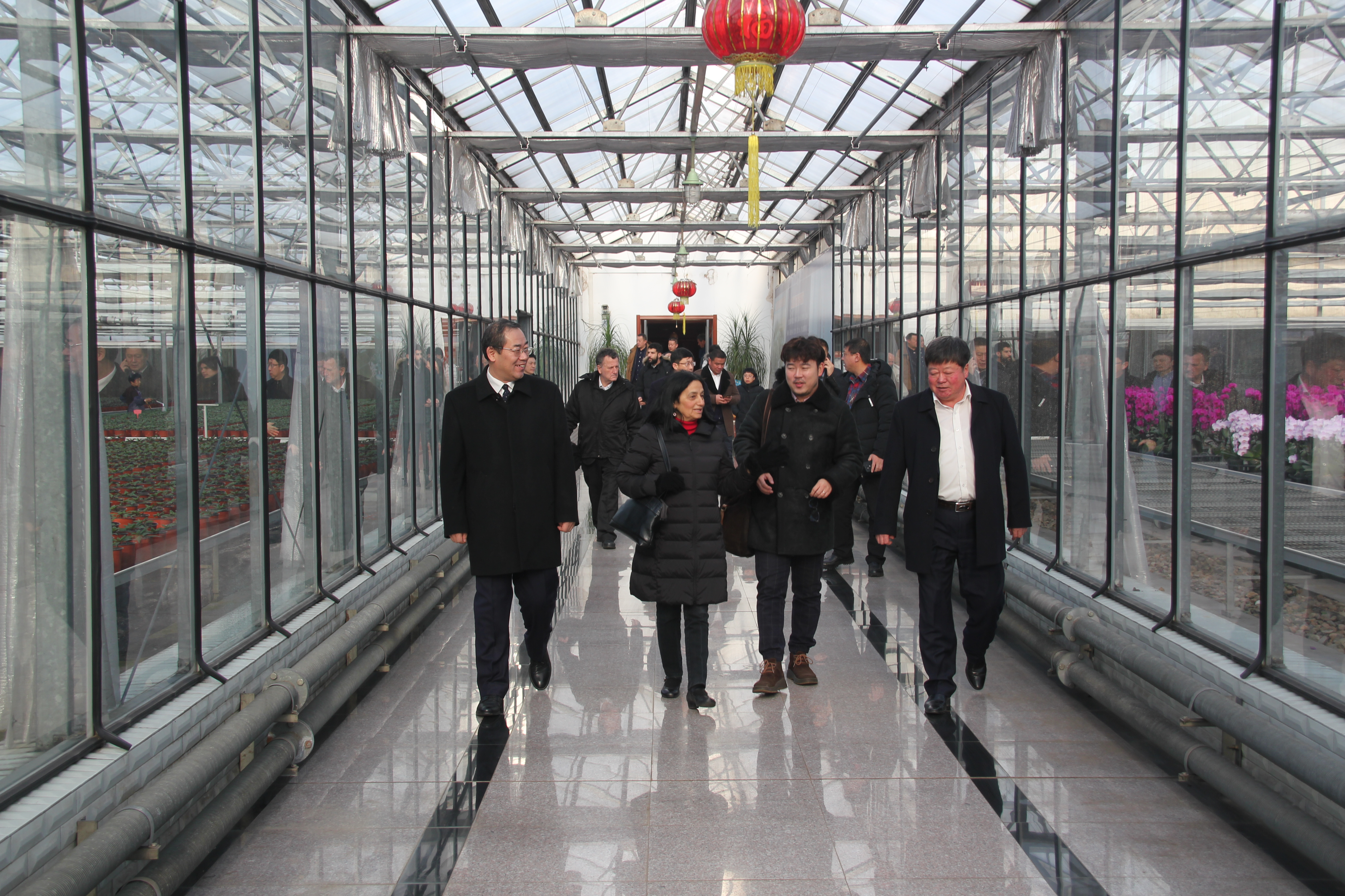 座谈前,李文华院长陪同以色列农业考察团一行参观了园艺分院日光节能温室、智能化温室等科研试验区。以色列温室及蔬菜栽培专家Zeidan随后介绍了以色列温室研究、蔬菜栽培等最近进展。