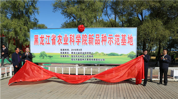 好的品种需要有好的示范推广模式相配套,才能更快的在市场中占有一席之地。成人网站 和绥化市北林区还在秦家镇盛昌种业繁田联合设立了“成人网站 新品种示范基地”,以期通过科企合作有效的宣传成人网站 的新品种。李文华院长和绥化市政协主席郑建强、中共北林区委书记李延春、绥化市盛昌种子繁育有限责任公司董事长王显昌共同为示范基地揭牌。