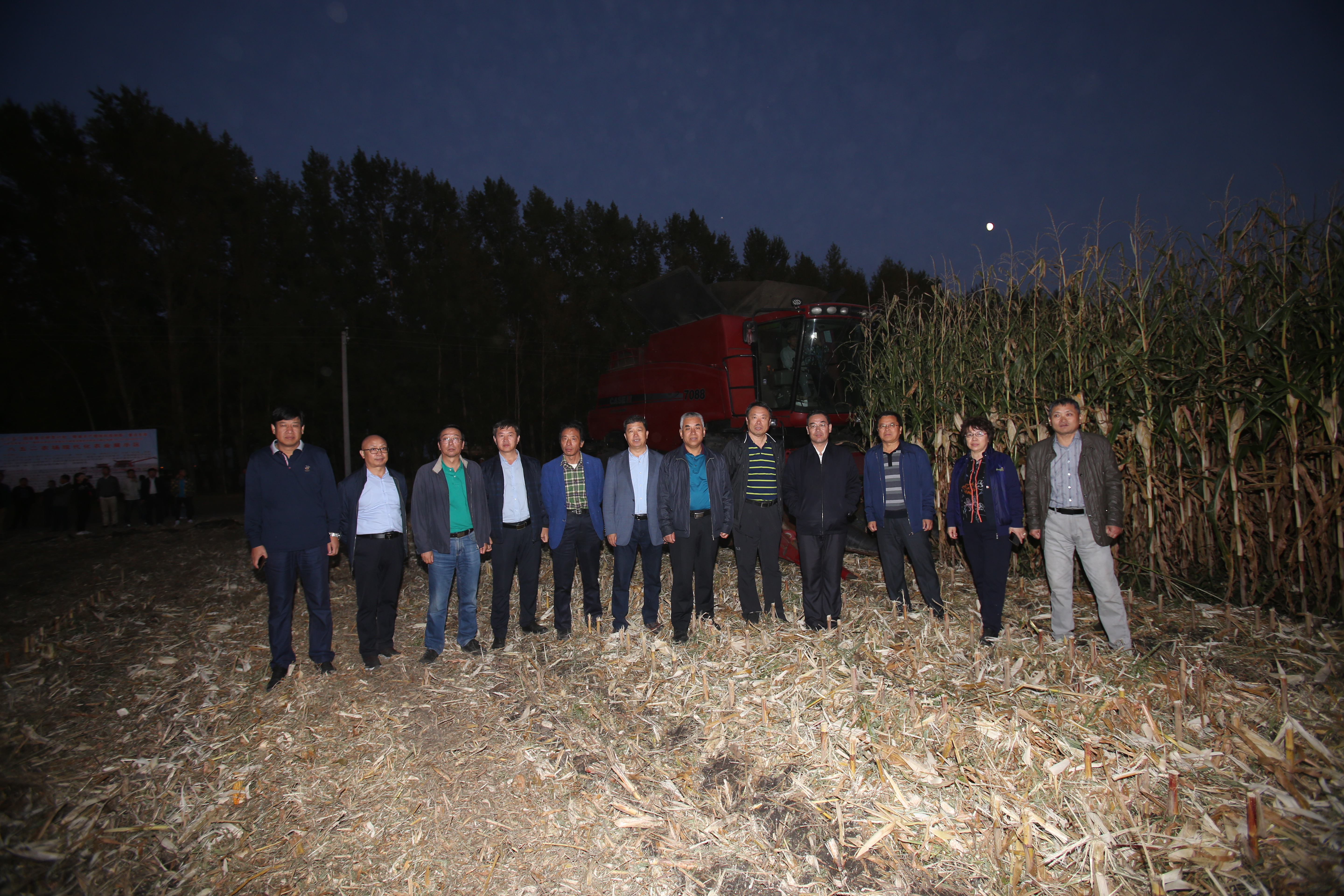 在八五二农场占地2000亩的玉米示范项目核心区,项目负责人龚士琛、杨德光、陈喜昌分别介绍了玉米催芽断根技术示范、精良施药减药技术示范、新型化控调节剂应用示范、有机生物活性菌剂应用示范、东北平原玉米水稻高效施肥技术研究与示范、机械化粒收玉米品种展示、菌高戈复合微生物菌肥应用示范、禾动力有机肥应用示范等示范研究内容,并现场进行了机收展示。