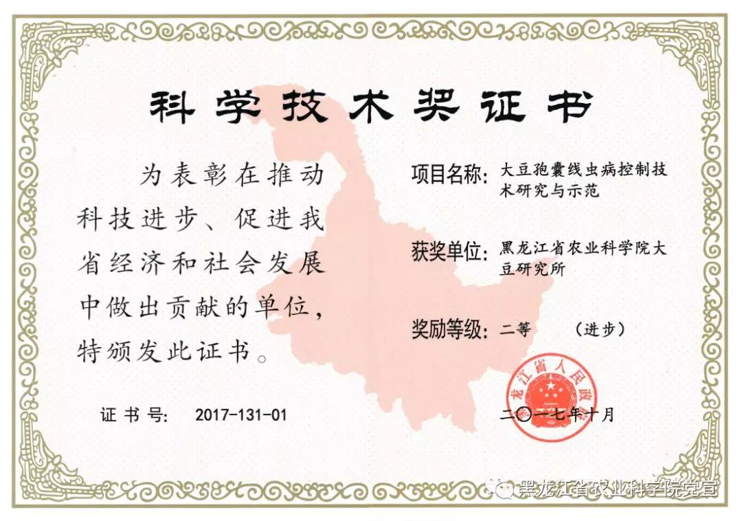 获奖类别及等级:2017年黑龙江省科学技术奖科技进步类二等奖