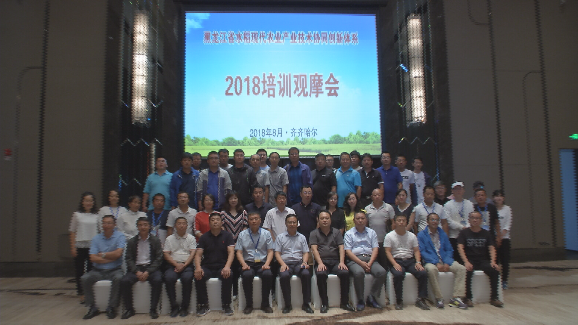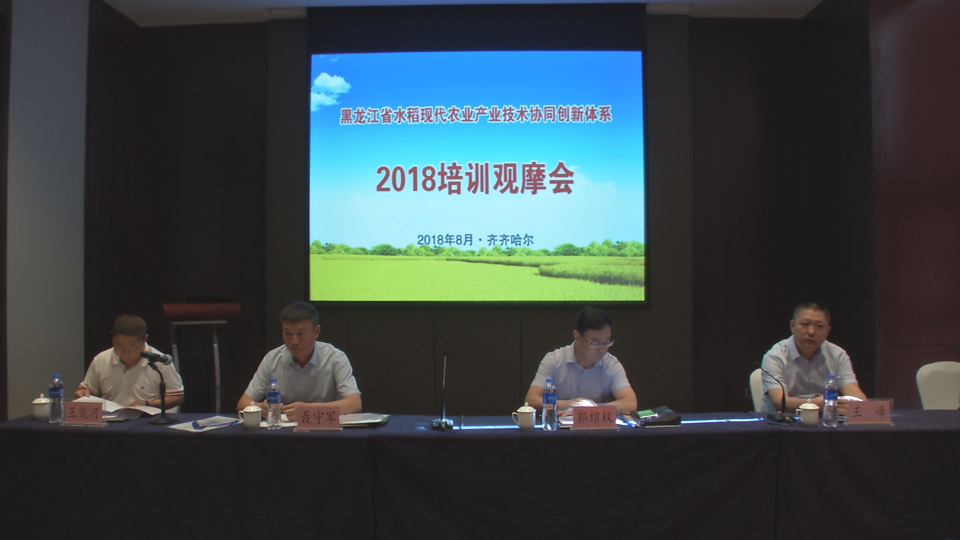 8月18日,黑龙江省水稻现代农业产业技术协同创新体系培训观摩会在齐齐哈尔召开。省农委科教处处长郭绍权、齐齐哈尔市农委副主任王峰、成人网站 齐齐哈尔分院院长王俊河、绥化分院党委书记景玉良出席会议。水稻体系首席科学家、各岗位专家、试验站站长及当地农技推广人员、水稻种植合作社、种植大户共100余人参加了会议。会议对水稻体系成立以来的工作进行了一次阶段性的总结和评价,并将体系的科技成果向广大农民朋友进行了推介、宣传、培训。
