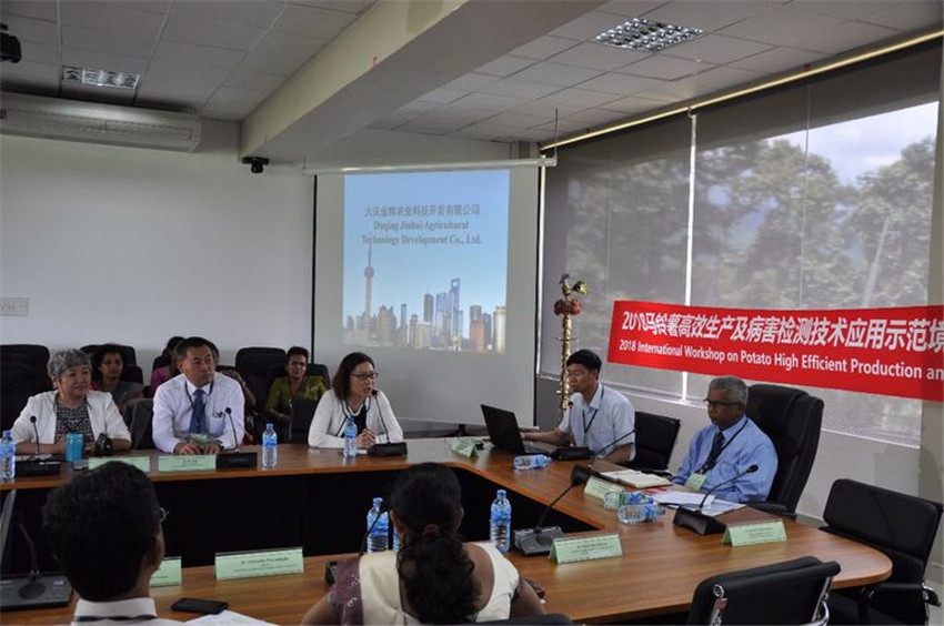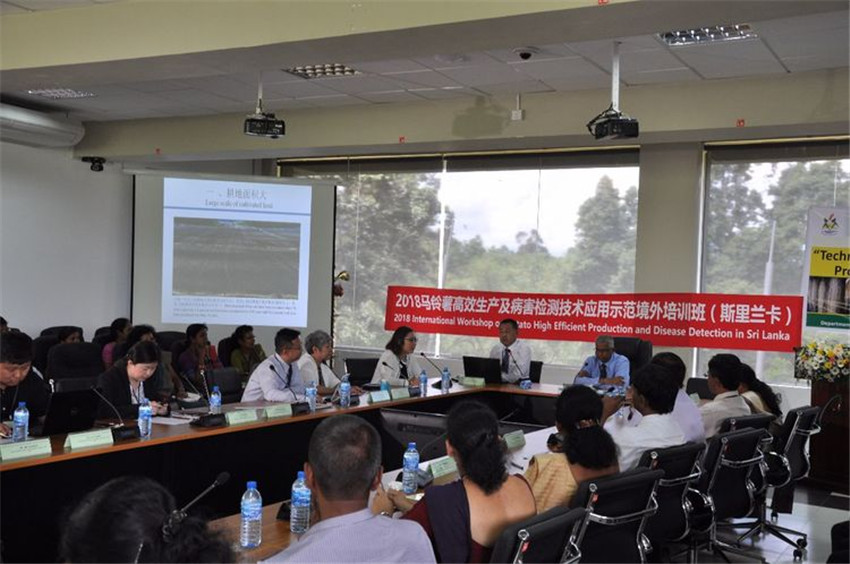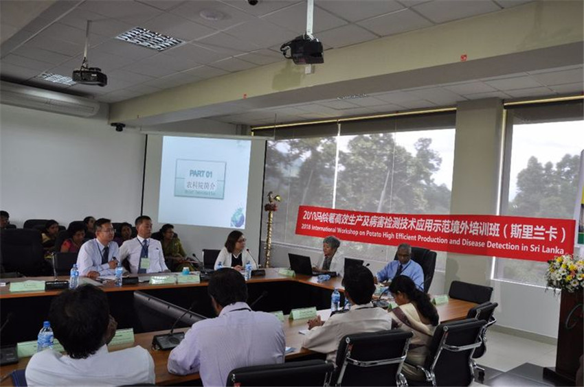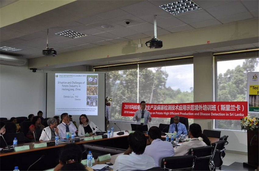 随后,总农经师马玉祥、院外事处处长何宁、苗木所所长吕典秋分别做了关于“黑龙江省农业发展现状”、“成人网站 及国际合作情况介绍”、“中国马铃薯产业发展及成人网站 马铃薯科技创新”的报告。斯里兰卡农业研究中心马铃薯研究负责人Wathsala博士做了“斯里兰卡马铃薯产业发展现状”的报告。随团中方企业代表也做了相关的企业发展和产品推介。当晚,斯里兰卡农业部还组织了欢迎晚宴,宴请成人网站 培训代表团一行。