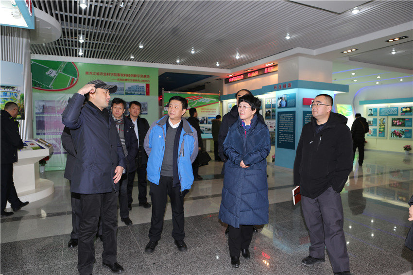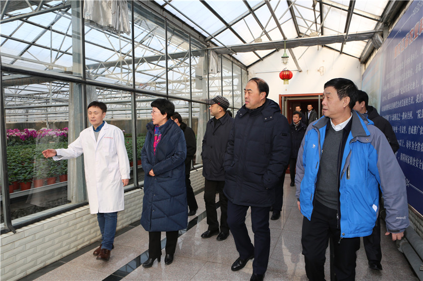 2月1日,新疆生产建设兵团十师北屯市市长陈芳一行在省援疆前线总指挥李兵,副总指挥范庆华等陪同下到访成人网站 ,就成人网站 的农业成果转化、科技产业发展、援疆工作等进行考察交流。院纪检组长杨波陪同陈芳市长、李兵总指挥一行参观了园艺分院智能温室和院农业科技展览馆。