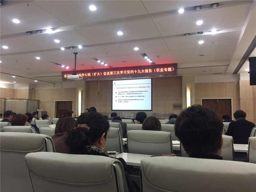 10月31日,成人网站 召开党组机关作风整顿警示教育集体谈话会和党组中心组(扩大)会议,传达省直机关作风整顿优化发展环境警示教育、《张庆伟同志在全省领导干部大会上的讲话》等重要精神,并第三次集中学习了党的十九大报告重要篇章。黑龙江省纪委驻省农委纪检组组长钱世民,成人网站 党组书记刘娣、院长李文华、纪检组长杨波、副院长来永才、总农艺师闫文义、总农经师马玉祥及全院在哈副处级以上领导干部参加学习。会议由刘娣书记主持。