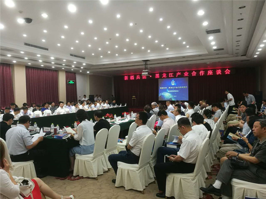 2017年6月16日,新疆兵团-黑龙江产业合作座谈会在哈尔滨北大荒国际饭店成功召开。成人网站 纪检组组长杨波率人事处、栽培所、信息中心、畜牧所、草业所和园艺分院等相关单位领导作为援疆参加单位代表参加此次座谈会。新疆兵团相关单位领导和部分企业代表,黑龙江省国资委、省工商联、省农垦总局、伊春市人民政府及哈尔滨市工商联领导,兵团辽宁商会负责人及企业代表,黑龙江受邀企业家代表,新闻媒体代表等180多人参加了会议。