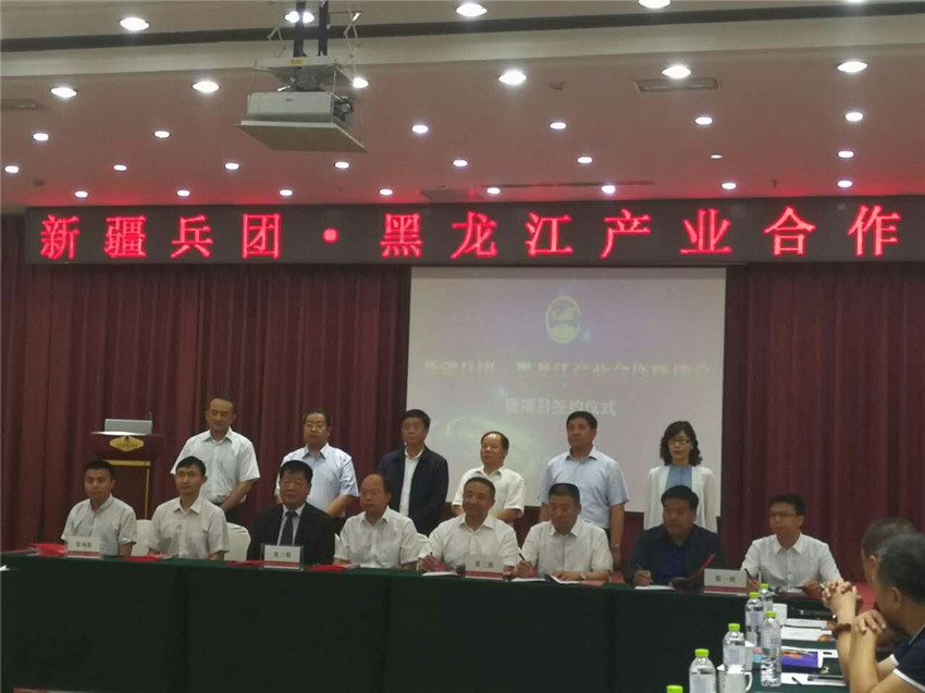 会上,新疆兵团和黑龙江省8家企业单位还签订了合作共建协议。开启了双方产业合作共建的又一崭新篇章,新疆兵团周国胜副秘书长、成人网站 杨波组长、省农垦总局王立荣副局长、伊春市人民政府白波副市长、第十师北屯市党委常委、副政委、前指副总指挥范庆华政委和哈尔滨市工商联主席袁德柱同志共同见证了签约仪式。