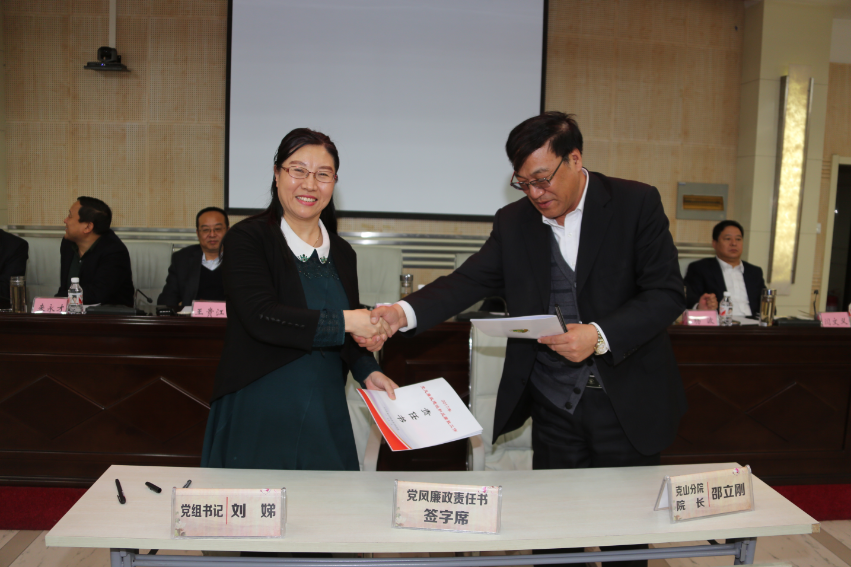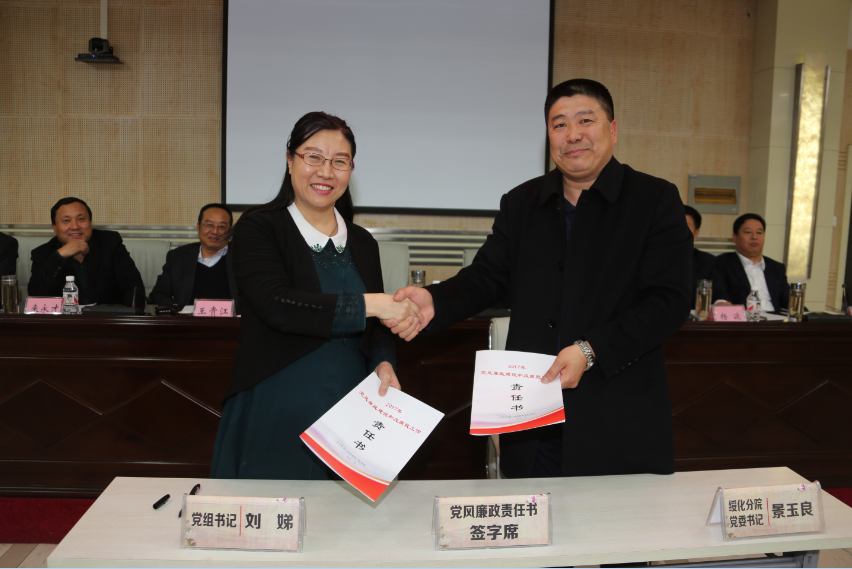 会上,院领导班子还集中进行了廉洁从政承诺宣誓,共同表达了廉洁从政的决心。同时,刘娣书记还代表院党组与院属各单位主要负责人代表在会上签订了《2017年党风廉政建设和反腐败工作责任书》,做到廉政建设层层传导压力,最后,刘娣书记携全体班子成员进行了廉政公开承诺,他们将以自己的承诺迎接全院的监督,带头把成人网站 的廉政工作做好!