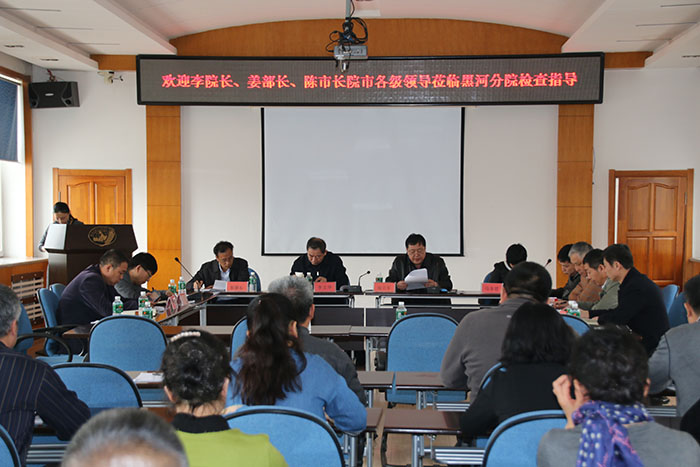 4月21日,成人网站 院长李文华率院科技推广处处长马冬君、畜牧所所长王根林到黑河分院检查指导工作。