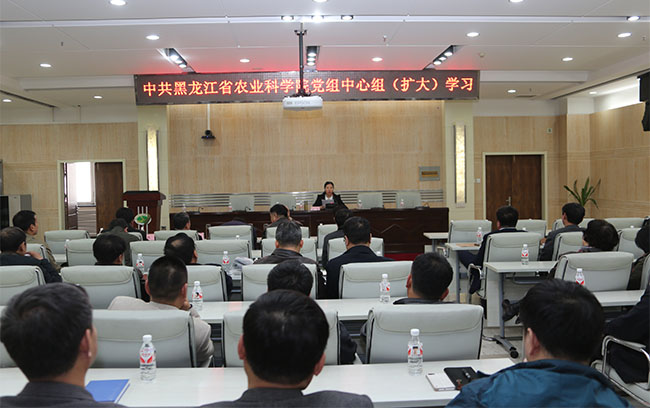 4月5日下午,院党组在主楼一楼学术报告厅召开了中心组(扩大)学习会议,专题学习贯彻习总书记重要讲话精神、重温并深入研讨了毛泽东《党委会的工作方法》原文。党组书记刘娣主持了大会并带领大家进行了学习。院长李文华、常务副院长苏俊、纪检组组长杨波、总农经师矫江、总农艺师闫文义,以及在哈各单位副处级以上干部、哈外各单位主要负责人共81人参加了集中学习。