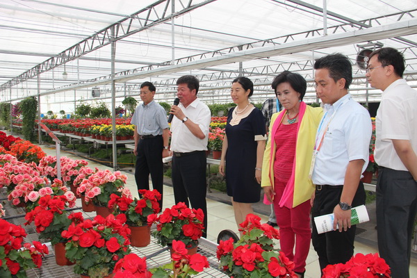 戴常委一行首先参观了园艺分院龙园智能温室。来自兰花之乡的台湾考察团,在相距几千公里外的北国冰城看到家乡品种的兰花开放得如此繁茂,不胜欣喜。随后,考察团一行在连栋大棚展示区,看到从台湾引进的番茄、茄子、甜椒、西瓜等果蔬作物硕果累累,长势喜人,戴常委表示,能够使台湾的品种在北方高寒地区栽培成功,是农科院辛勤的付出,这种资源共享、优势互补的形式,有利于拓展两地绿色生态农业产业化发展,同时也是海峡两岸合作的又一个新契机。
