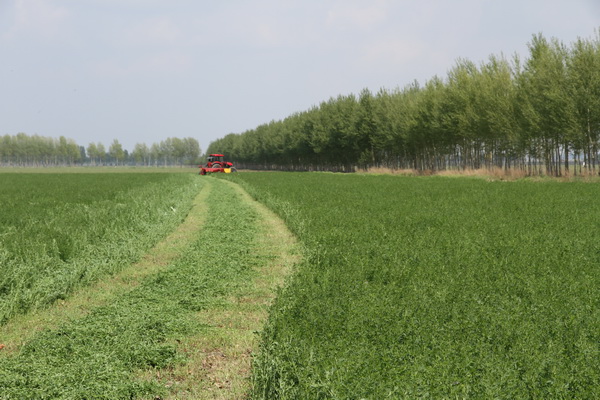 据了解,兰西县远大乡胜利村地理位置相对偏远,全村的耕地几乎是清一色的盐碱地,大部分土地pH值在8.0以上,有些地方更是寸草不生,由于新农村建设的实施,这个“小”村庄的面貌发生了变化,但村民依靠种植玉米的收入并没能给他们换来富裕的生活。2012年,兰西县高效现代化大农业示范园区落户胜利村,成人网站 草业所的专家要在这片高度盐碱的土地上进行结构调整——大面积推广苜蓿的种植。在胜利村饲草专业合作社的全力配合下,当年落实种植面积5万亩。该村的党支部书记、合作社理事长赵正友高兴的说,“在草业所专家的指导下,去年我们合作社的苜蓿一亩地能产干草0.6~0.7吨,每吨的价格是2200元,这样减去投入,一亩地剩个1200~1500元不成问题。现在种苜蓿最不愁的就是卖,好多企业来找,这其中还有外国的企业。如今农民种植苜蓿的积极性很高,我们争取用三年的时间将苜蓿种植面积扩大到9万亩,进而将全村的15万亩耕地全部种上苜蓿,使我们村成为名符其实的苜蓿种植专业村。”