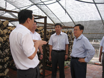 吕维峰副省长到育秧棚二次利用栽 培食用菌项目基地检查指导