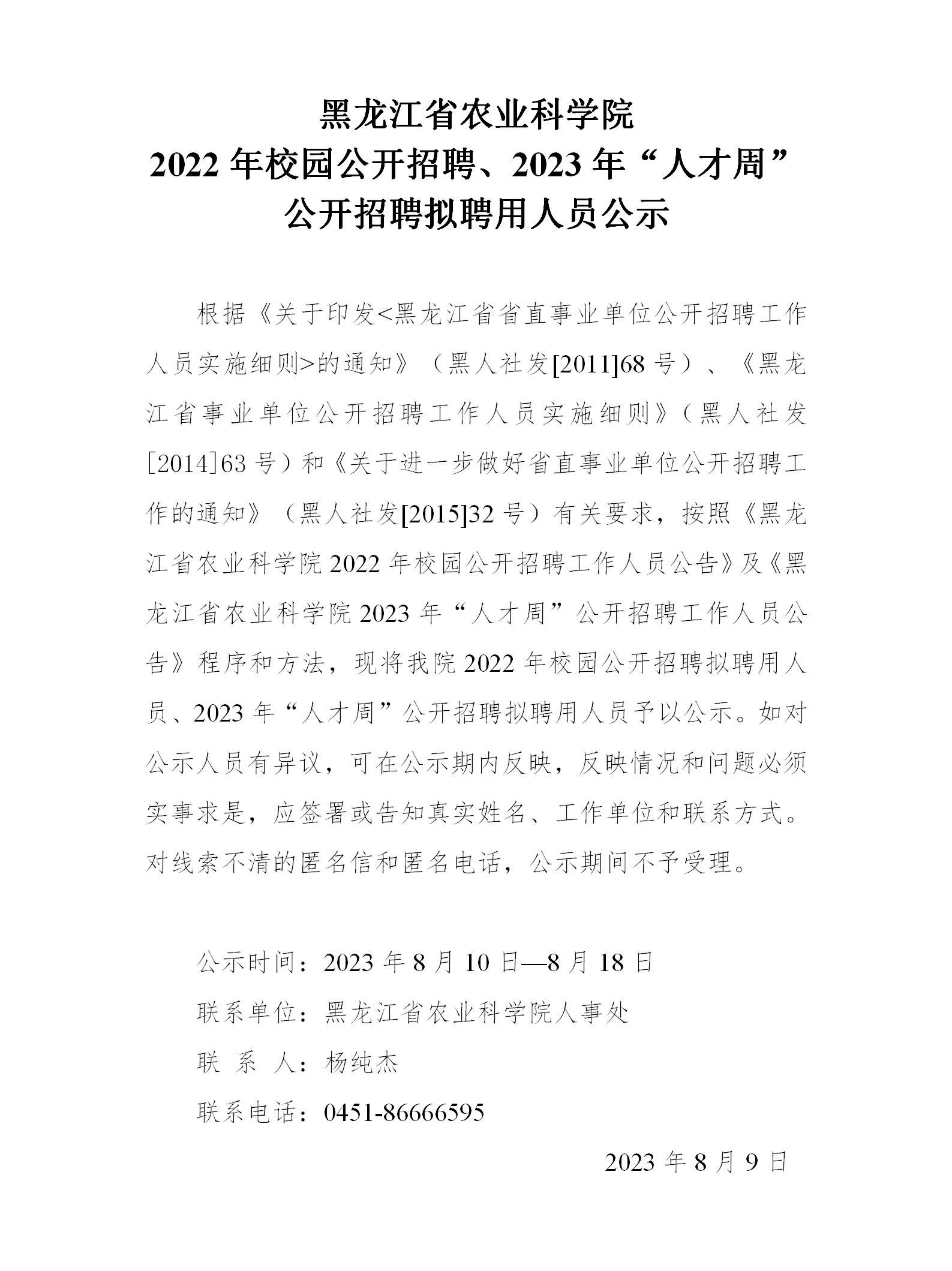 2023人才周拟聘用人员名单