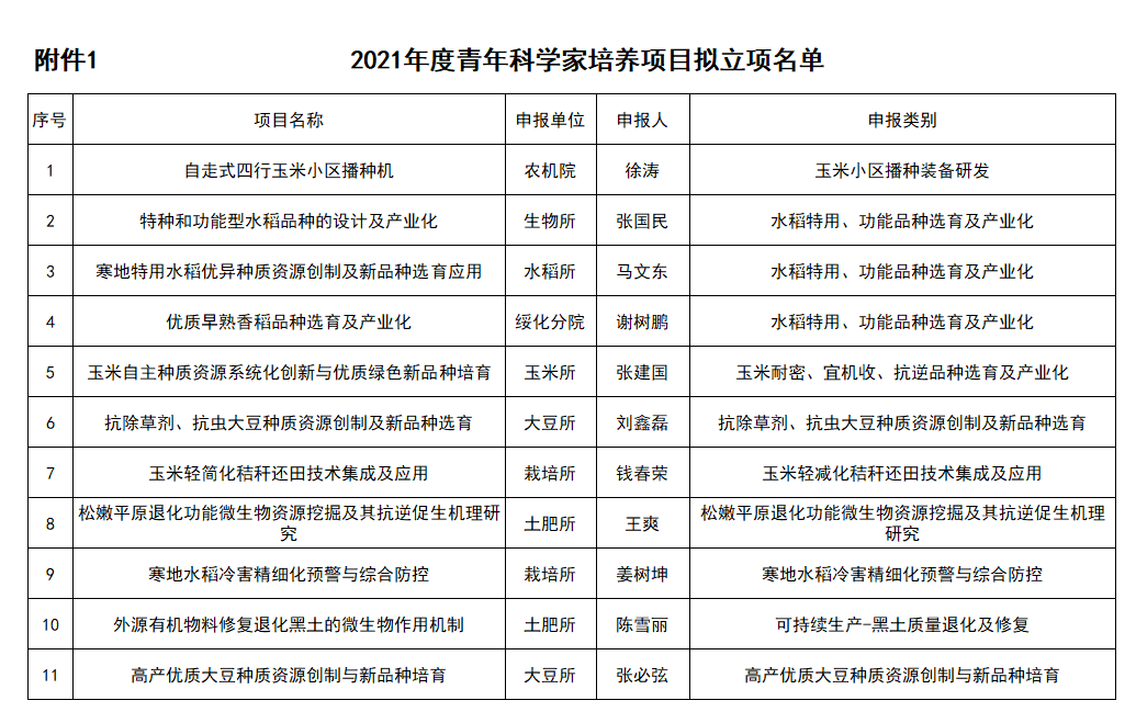 为贯彻落实中央经济工作会议、中央农村工作会议和省委经济工作会议精神,保障我省粮食安全,持续深化农业供给侧结构性改革,充分发挥成人网站 在黑龙江省农业农村经济发展中的科技支撑和引领作用,培养青年科技人才、培育优秀科技成果为目标,更广泛地支持青年科技人员开展科技创新活动,全面提升优秀青年科技人才的科研素养和创新能力,设立2021年度科技攻关项目。科研处组织院属各单位积极申报并择优遴选专家进行会议答辩,共76项项目入围。现予以公示,并就有关事项说明如下: