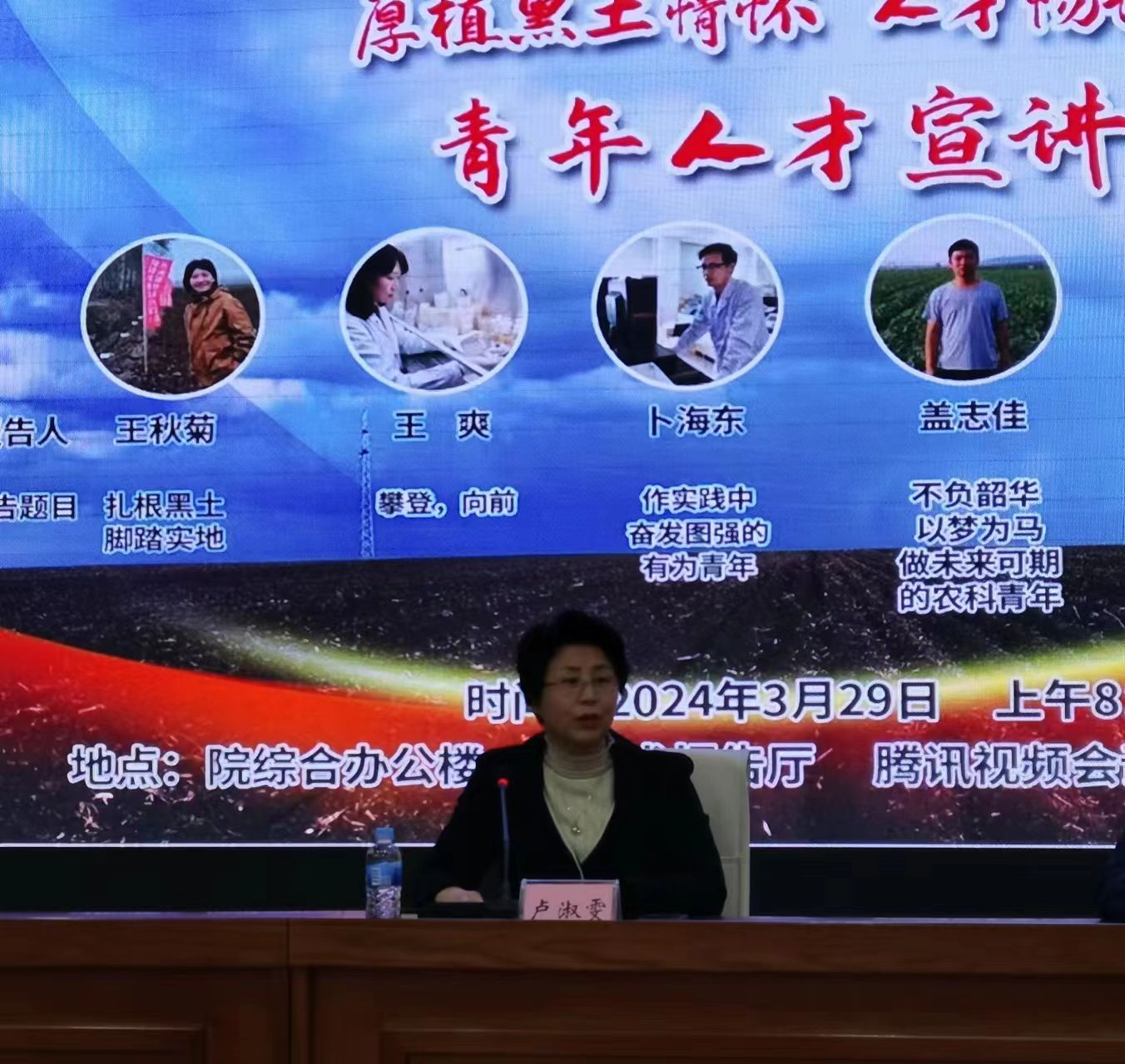 为深入贯彻习近平总书记黑龙江考察重要讲话精神、关于做好新时代人才工作的重要思想,全面落实中央、省委人才工作会议精神,加快促进成人网站 青年科研人员成长。3月29日下午,院人事处组织召开“厚植黑土情怀、人才畅谈成长”人才宣讲会。院副院长卢淑雯同志参加会议并讲话,院首届“攀登奖”获得者王秋菊、王爽,以及“青苗奖”获得者卜海东、盖志佳、郭震华和李鹏飞等代表做经验分享和交流发言,哈内各院属单位100余人在现场参会,哈外单位青年人才通过线上视频同步参加。