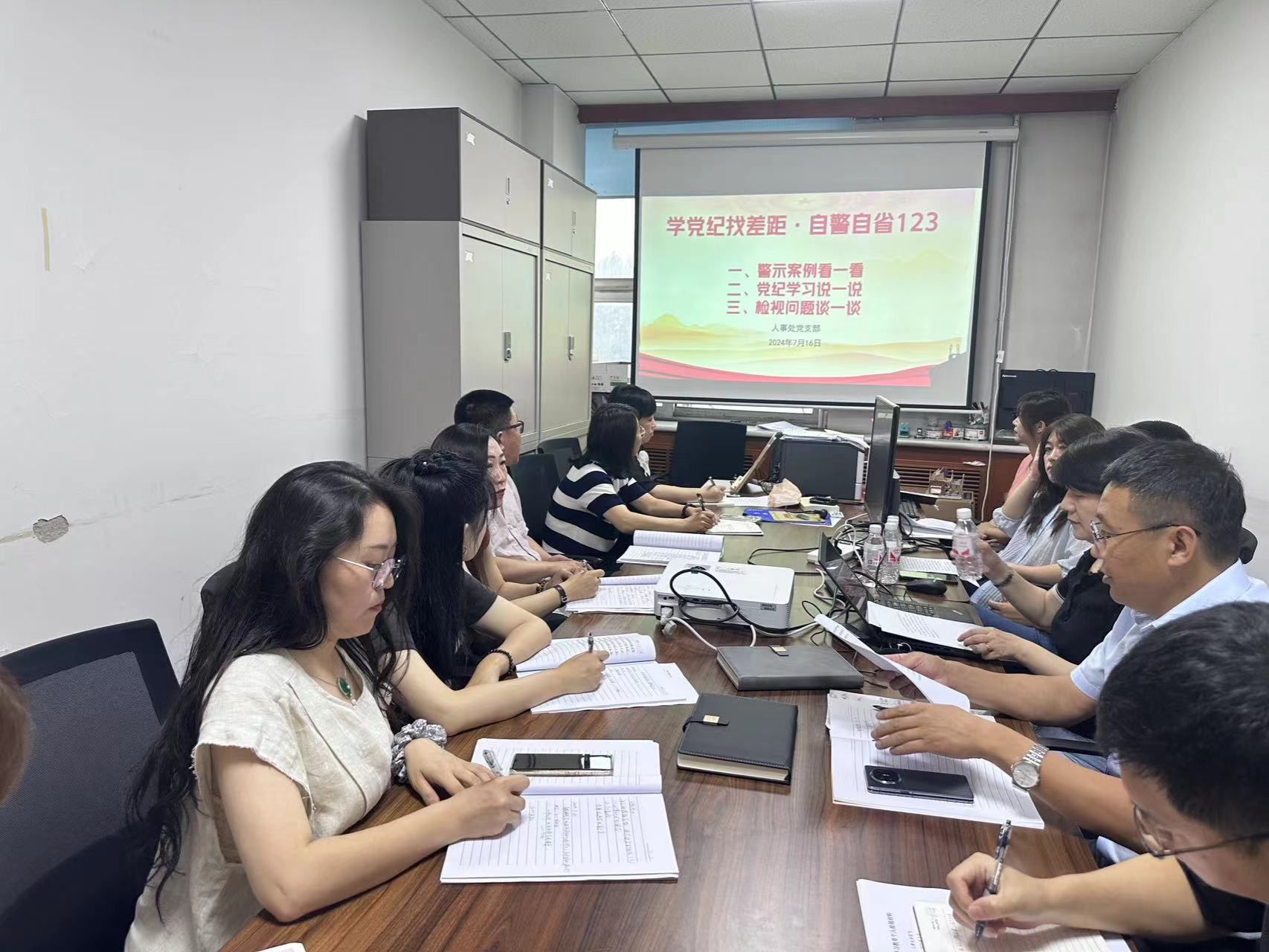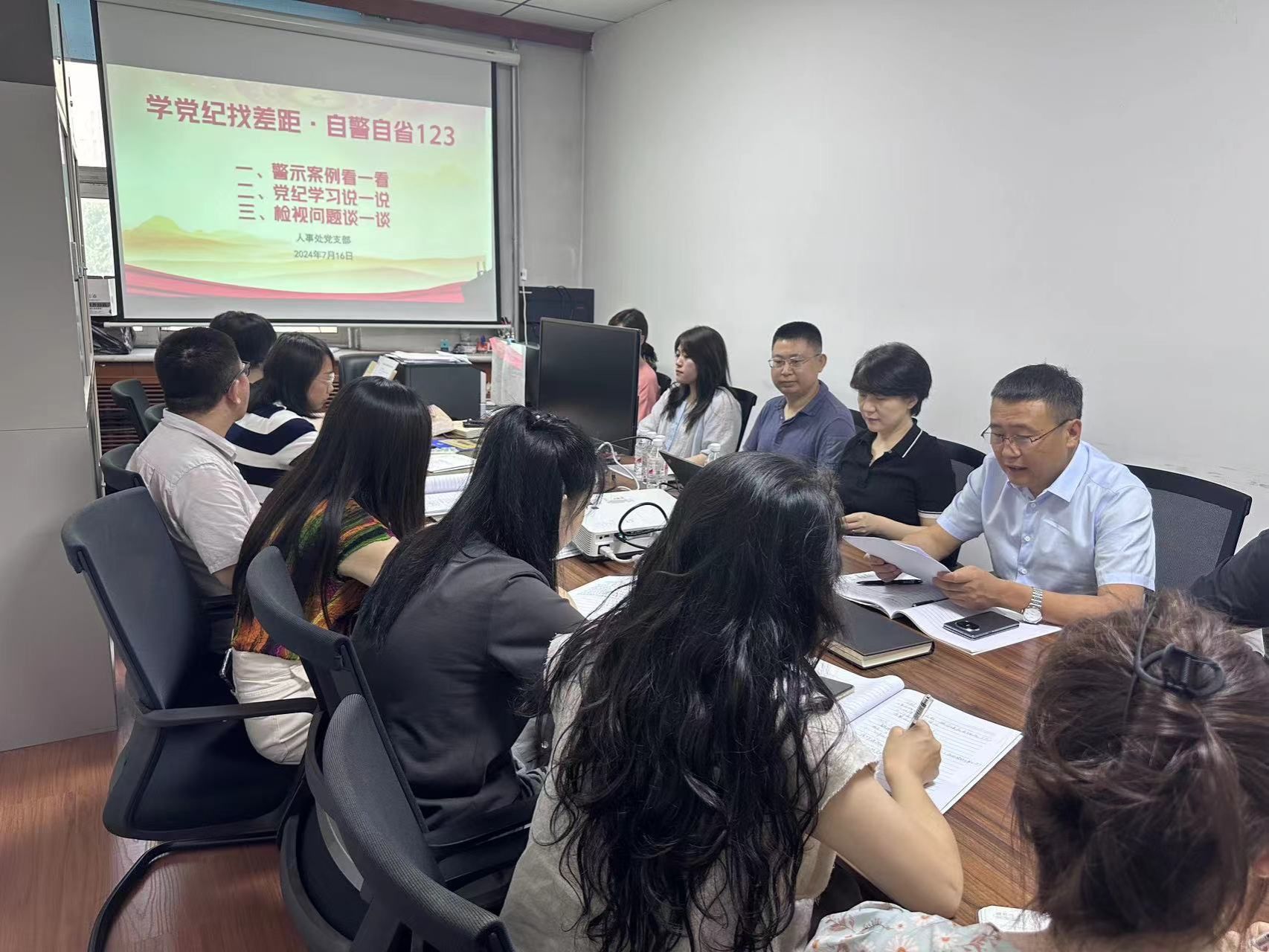 为积极响应院机关党委《关于在全院各党组织中组织开展“学党纪找差距·自警自省 123”学习活动的通知》要求,人事处党支部于 7 月 15 日上午 成功开展了“学党纪找差距·自警自省 123”活动。本次活动旨在加强党员的党纪意识,提高廉洁自律能力,促进工作中的纪律践行。