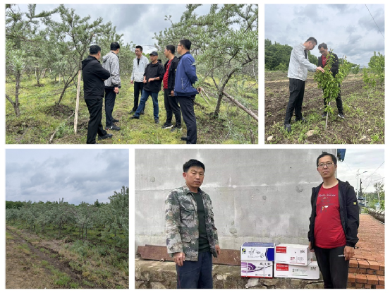 在孟家岗镇东胜村,专家们深入沙棘种植基地进行技术指导,该村是我省沙棘种植单片面积最大的果园,种植面积70公顷。由于去年沙棘产量过高导致今年大小年严重,春季做果率过低,同时部分果树根部及树干产生病害,园区负责人表示,春季用无人机进行打药,但是防治效果不明显。针对这一情况,科技特派员刘畅、唐克、张武杰对果园老弱病树提出补救建议,同时对药剂正确防治进行指导,并对沙棘新果园如建设及幼树整形修剪提出合理规划。园区负责人表示未来将加强与农科院专家联系与沟通,提高沙棘园果实产量和品质。正值苹果、李子等果树果实膨大期,专家们又来到大八浪铁山村,科技特派员刘畅对花后座果情况进行调查,同时针对果实膨大期叶片和果实易发生虫害的用药情况给与指导,并赠送相关药剂。