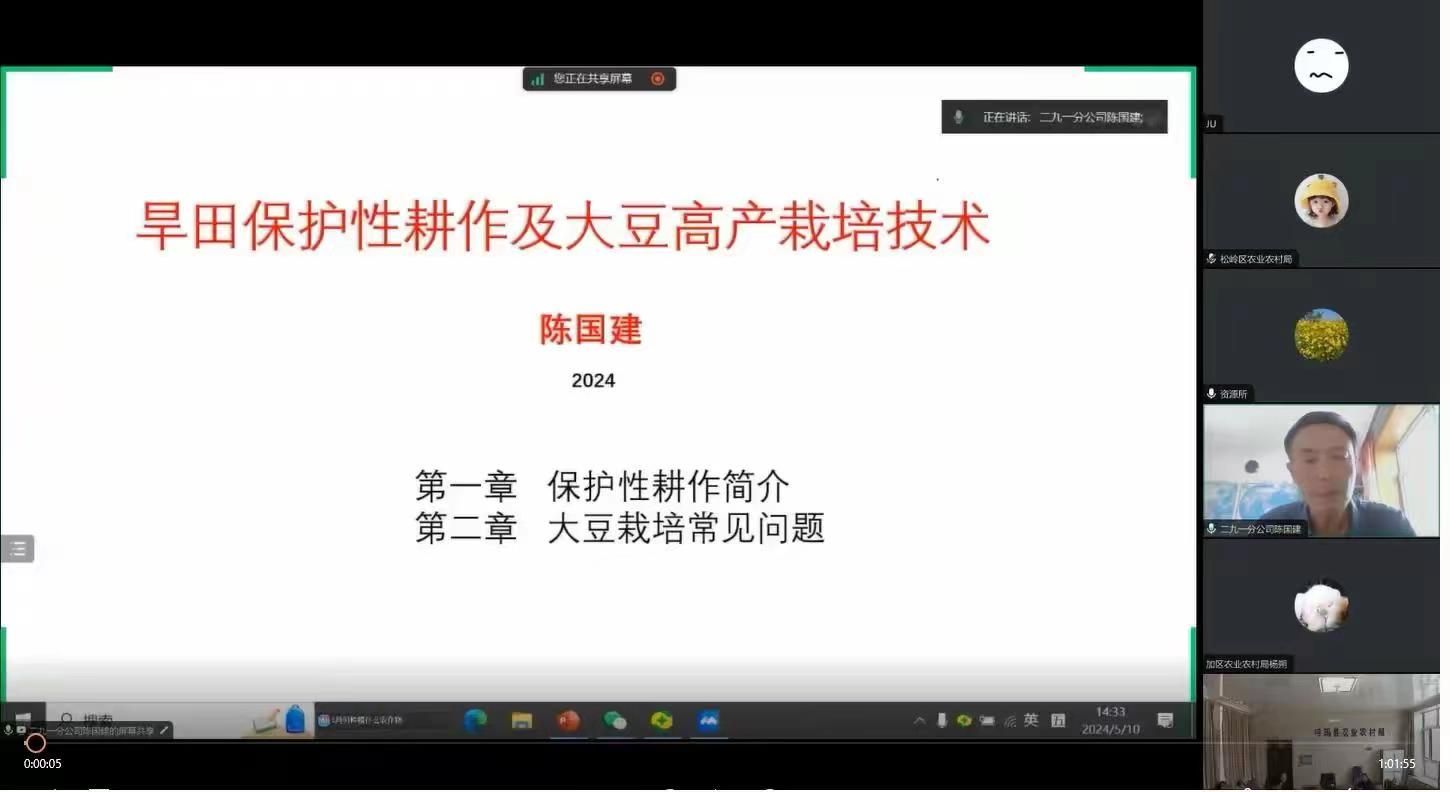 为助推粮食产能提质增效,加强科技帮扶,推动乡村振兴,保障科技增粮工作有序开展,5月10日,作物资源研究所特邀成人网站 耕作栽培研究所特聘研究员、栽培专家陈国建老师为同江市及大兴安岭地区农业农村局做以“大豆大垄密植栽培技术”为题的专题培训。