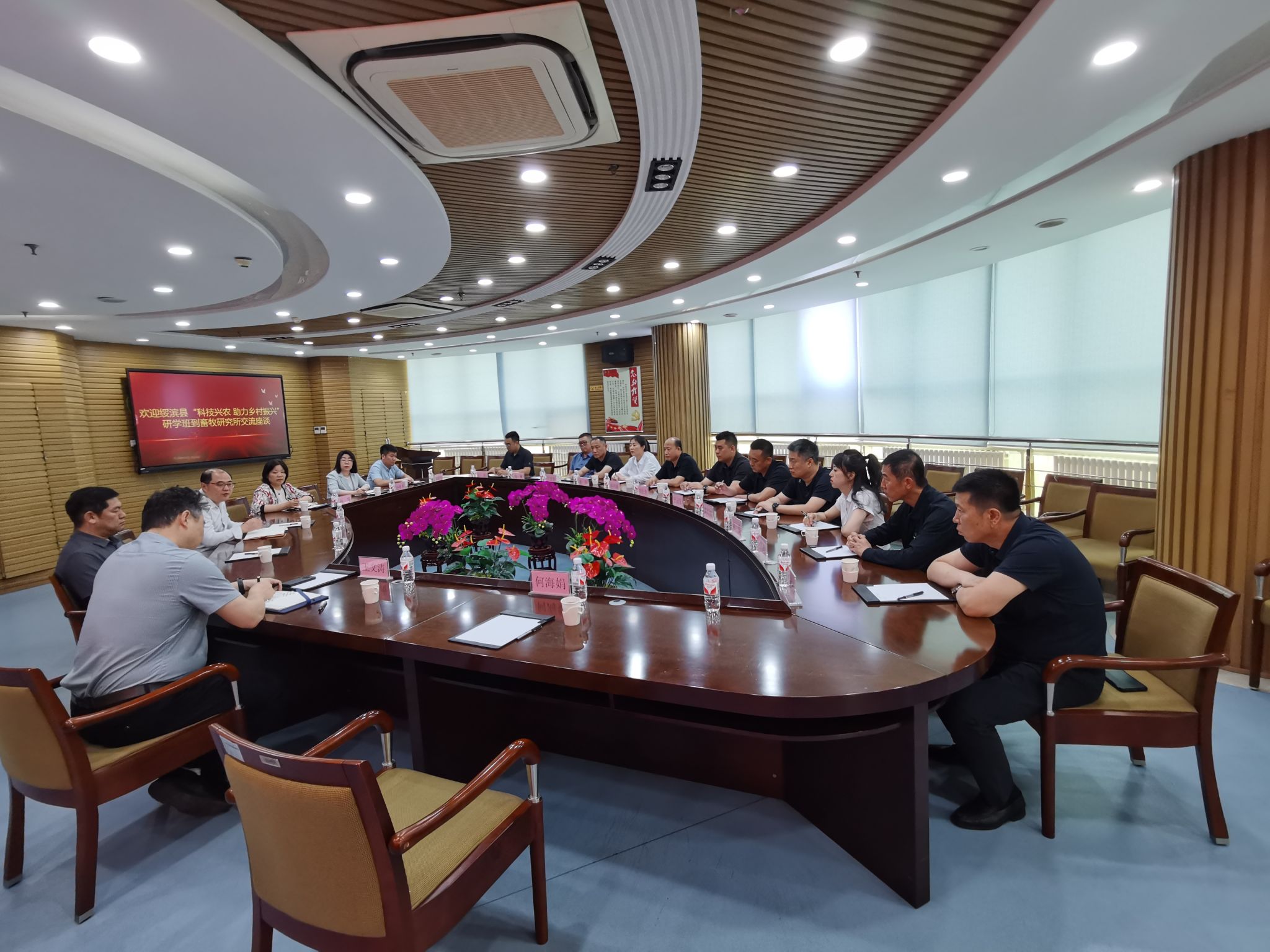 7月10日上午,畜牧研究所所长、绥滨县委副书记杨帆和绥滨县委常委刘长青等一行12人到畜牧所交流,并同畜牧所副所长、国家生猪产业技术体系岗位科学家、省生猪产业技术体系首席科学家何鑫淼、省生猪产业技术体系岗位专家王文涛、国家肉牛产业技术体系岗位科学家、省肉牛产业技术体系首席科学家孙芳、国家水禽产业技术体系岗位科学家赵秀华、畜牧所技术研发与成果转化研究室郑殿重博士进行座谈。