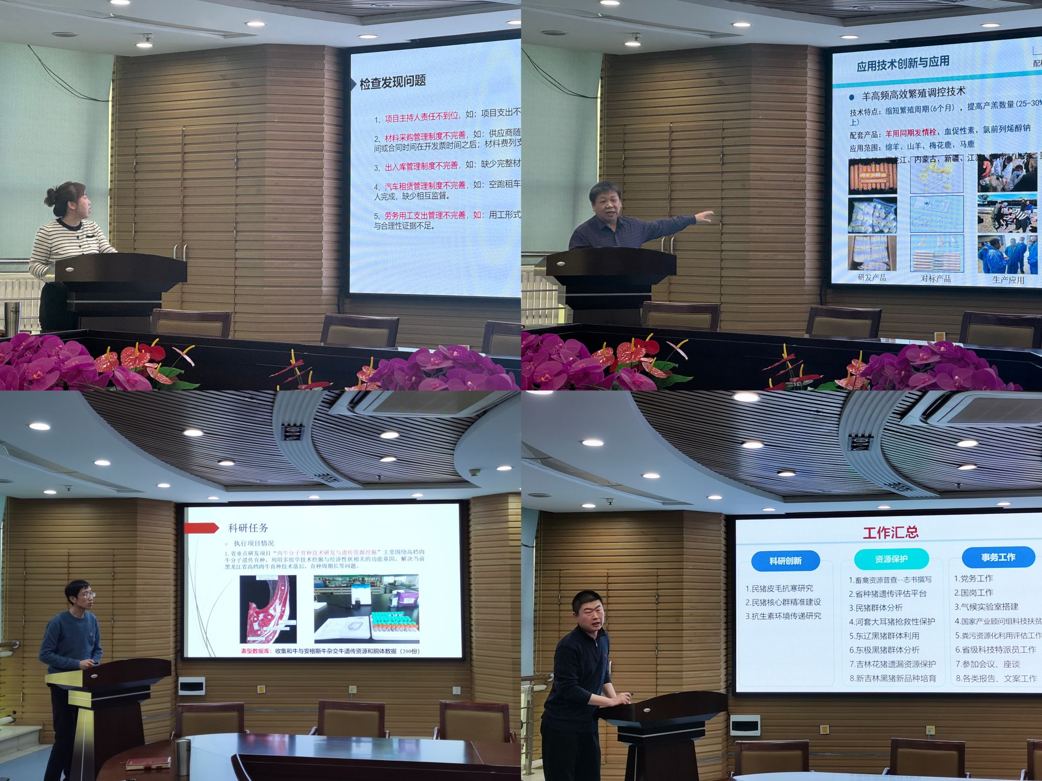 会上首先由各部门负责人做总结汇报,五位研究室负责人与综合管理办公室主任、主管会计依次汇报了全年工作的亮点、重点、难点及解决路径,通过详实的数据和直观的实例聚焦各自的主责主业,为全所上下创设争做业务上的实干者、组织中的先锋队的积极氛围。其次由以良好履职表现为基础的三位典型人员从专与精的基础研究同产业结合、深耕一线技术服务、突出工作饱满度的角度进行汇报,是畜牧所全体成员向深处扎根、向实处转化、向高处提领的缩影。