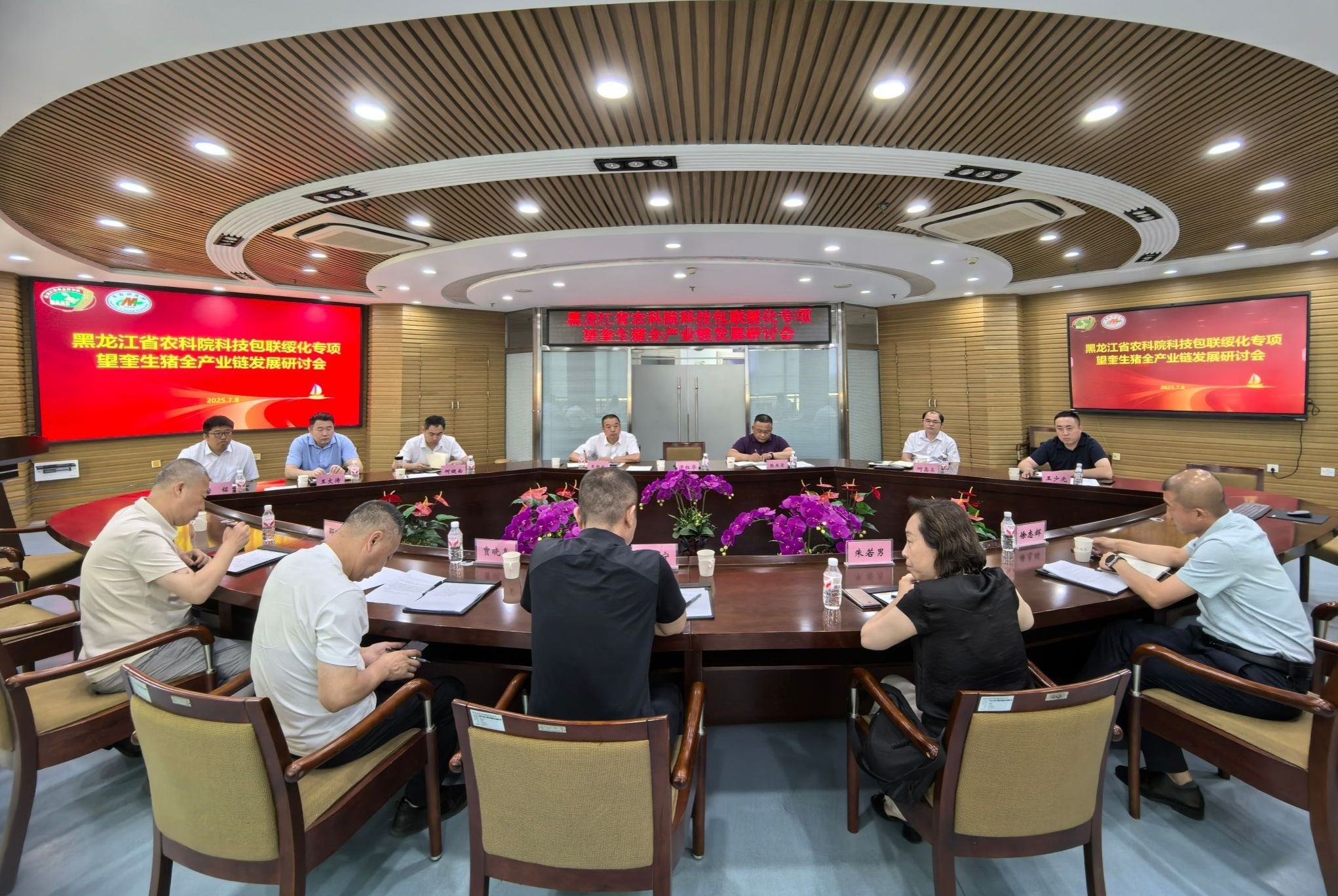 7月8日,成人网站 科技包联绥化专项望奎生猪全产业链发展研讨会在畜牧研究所会议室召开。望奎县人民政府副县长王宁、农业农村局副局长贾晓亮出席,哈尔滨理工大学教授朱若男、 黑龙江蓝色融合生物信息股份有限公司董事长、蓝驰检测及猪链智融生态农业供销产业平台创始人邵晓波、省昕硕农牧科技有限公司总经理徐志辉作为高校、企业领域专家代表与会。省农机院党委书记、院长张燕梁、成人网站 绥化分院院长王根林、畜牧研究所副所长何健南等科研干部参会,畜牧研究所所长何鑫淼主持会议。