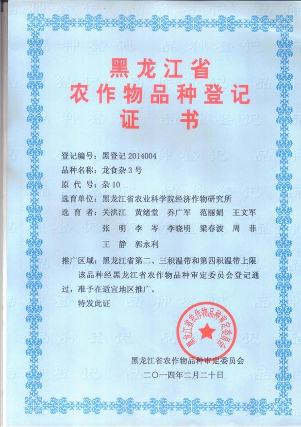 4、审定编号:黑登记2014004。