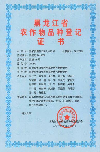 黒亚25号品种简介:以法国品种Ariane为供体,以我所育成的亚麻品系9702(黑亚8号×col188)为受体进行DNA导入,通过对导入后代的不断选择和多年多点的鉴定选育而成,2016年5月通过黑龙江省农作物品种审定。