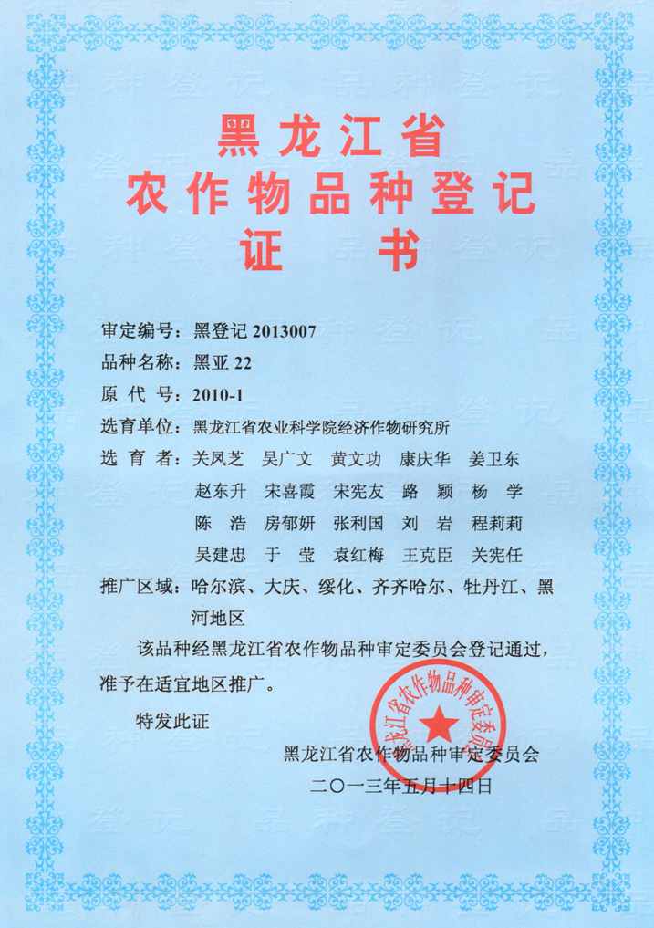 品种名称:黑亚22号