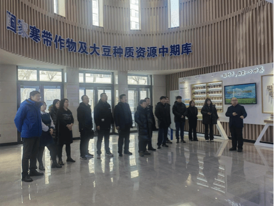 林克剑所长一行首先听取了草业研究所副所长韩微波关于草业研究所发展情况的汇报,并参观了国家寒带作物及大豆种质资源中期库、草业研究所展览馆、实验室、智能温室等场所。