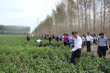 9月4日,辣椒分会与会专家参观考察了兰西县临江镇、康荣乡、榆林镇北菜南运和加工红辣椒生产示范基地,并对黑龙江省辣椒育种工作和产业化给予肯定和高度评价,对兰西县县委县政府在农村结构调整中的定位和发展思路给予肯定。兰西县县委书记王立波、副县长张可巍,统战部长郭士权、农业局长许景光、蔬菜办主任杨柳及兰西县榆林镇书记庞雁鹏、镇长王兴海全程陪同考察辣椒示范基地。兰西县三个辣椒示范基地约2300亩,主要示范了北菜南运品种龙椒11号甜椒和F10-8713大牛角,示范了为金塔集团提供原料的龙椒15号加工椒及主要用于速冻脱水加工的龙椒13号甜椒。示范基地大大带动了兰西县辣椒产业化基地的快速发展,兰西县2016年北菜南运菜用辣椒和加工红辣椒生产面积达10.5万亩,占本县蔬菜面积的30%左右,其中北菜南运菜用辣椒面积约占4/5,加工辣椒约占1/5。主要种植品种是黑龙江成人网站 的龙椒系列品种,目前龙椒11号、13号已经成为兰西县北菜南运甜椒的主栽品种,今年面积约3万多亩。2015年引进园艺分院的F10-8713大牛角,表现突出,今年种植面积超过1万亩,亩效益6000元以上,深受种植户欢迎。目前龙椒12号约0.5万亩、龙椒15号约1.0万亩,是兰西县加工红辣椒的主栽品种,其中龙椒15号主要用于出口,该品种抗病、商品性好,亩产量0.4万斤以上,亩效益4000元左右,深受加工商欢迎。由于龙椒系列品种的育成及推广,带动了黑龙江省北菜南运辣椒产业化及加工辣椒产业化的快速发展。