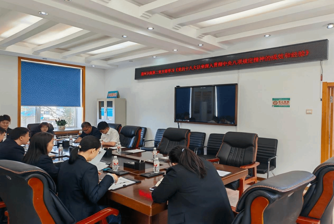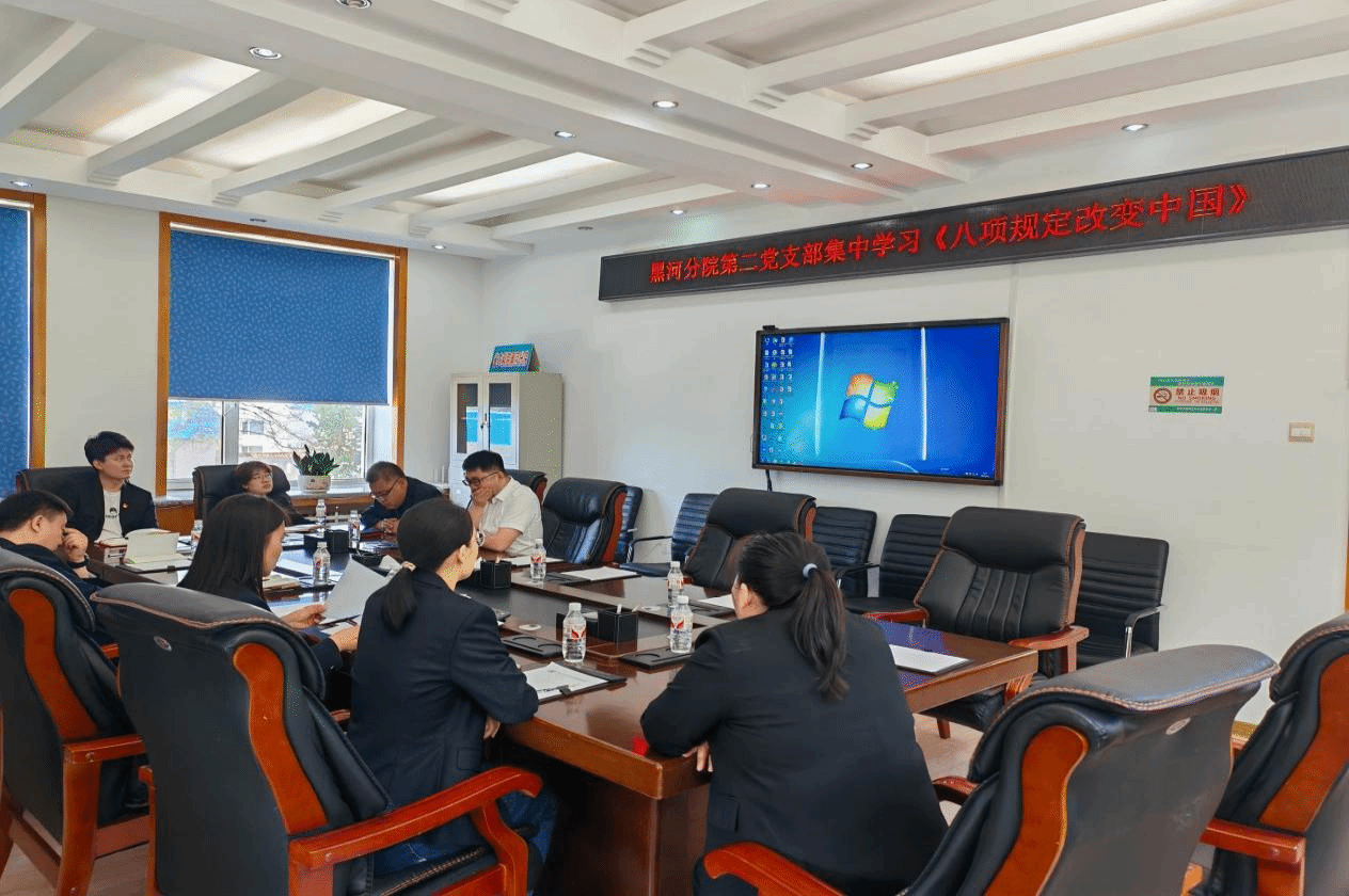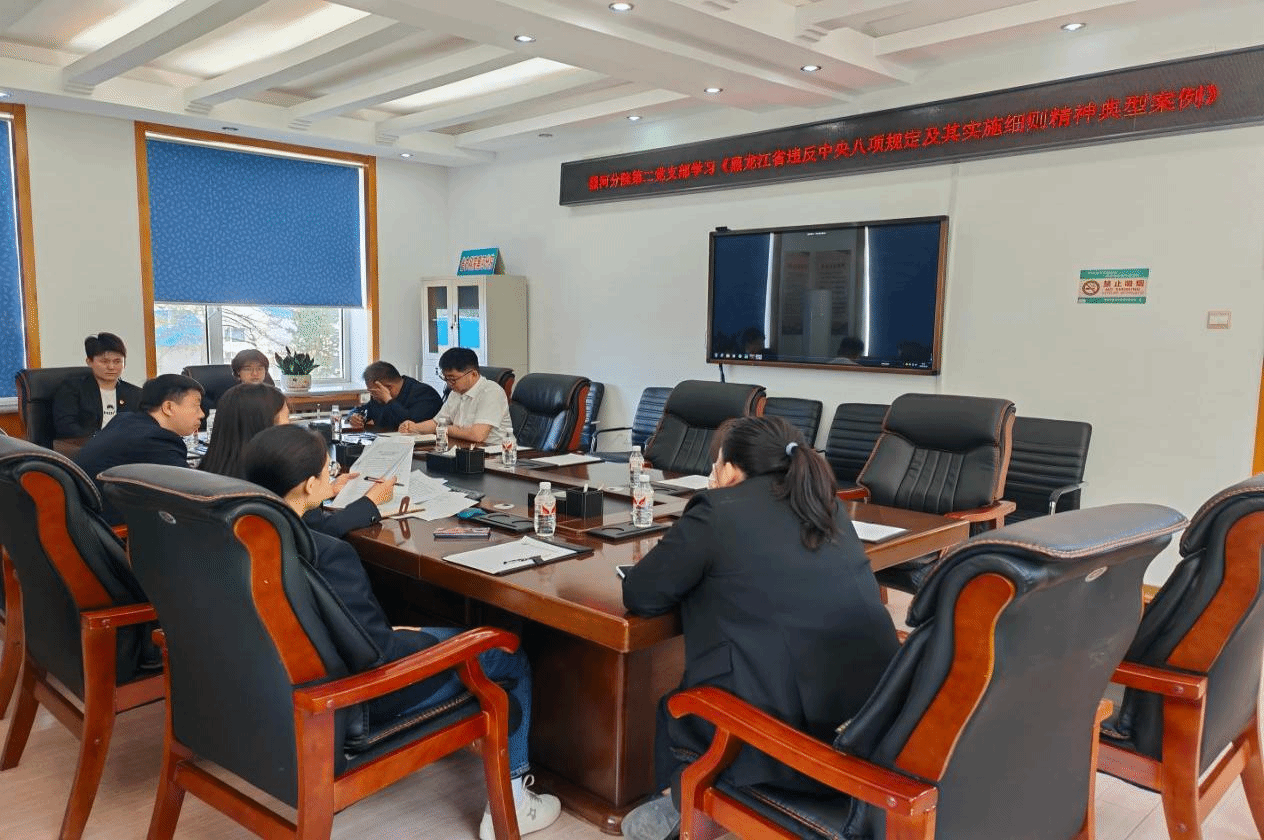 6月13日,党委书记、院长鹿文成在所在第二党支部宣讲题为《中央八项规定精神实施细则》的专题党课,并对违规吃喝问题进行提醒教育。6月10日,第二党支部书记宣讲深入贯彻中央八项规定精神专题党课;支部党员集中学习《党的十八大以来深入贯彻中央八项规定精神的成效和经验》、《黑龙江省违反中央八项规定及其实施细则精神典型案例》和《八项规定改变中国》。