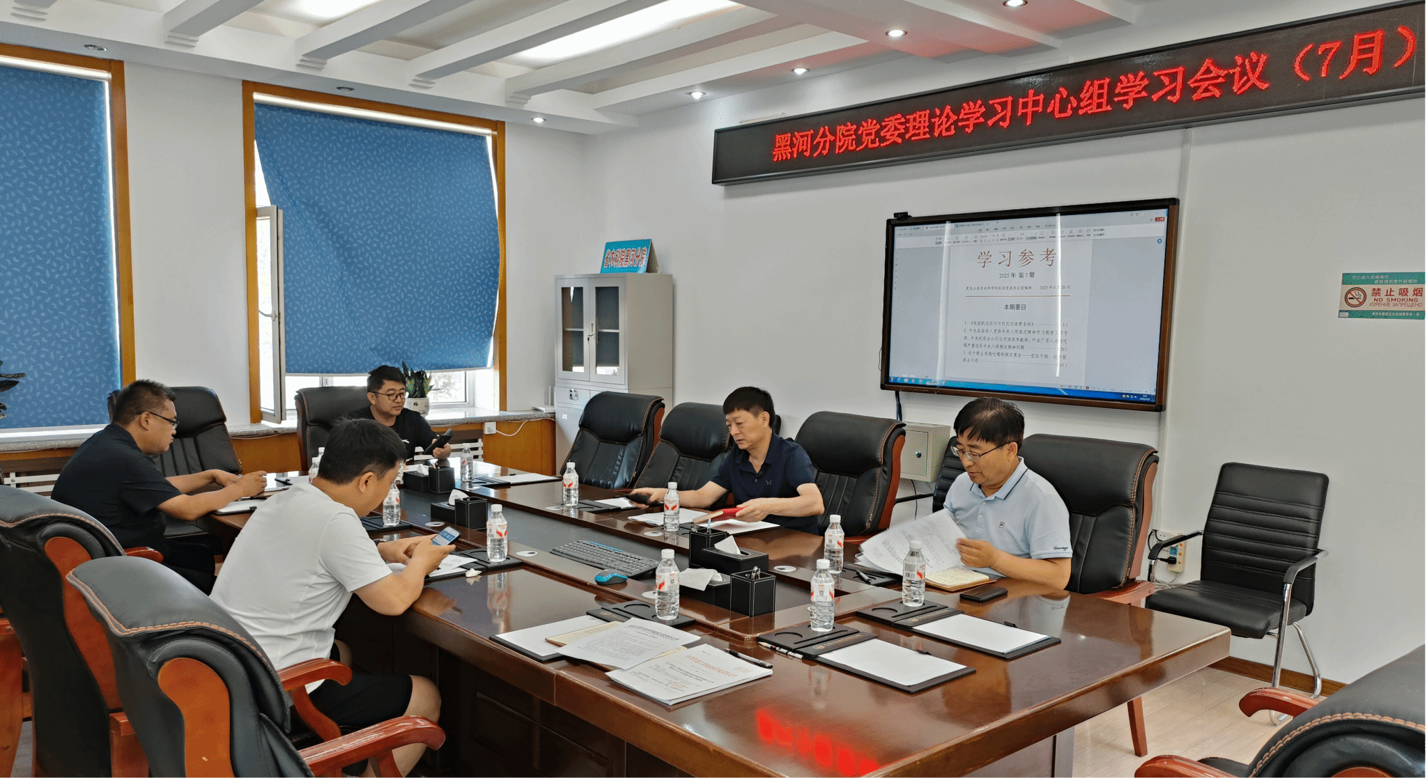 组织分院党员参加社区党委《一生交给党》红色观影活动。组织党员干部集中收看院长陈宇辉、副院长还红华讲学习教育专题党课。黑河分院党委与五大连池市农技中心党支部联合开展“庆七一 追寻抗联足迹 传承红色基因”红色教育培训活动,通过红色教育、廉洁教育、党史教育,进一步锤炼党性修养、提高思想觉悟、深化学习教育成果。