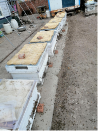 有狂风时,天气预报会提前监测到。遇到这种情况,养蜂从业者可以用砖头、石头等较重的物体以及绳索加固蜂箱,防止蜂箱被刮倒、吹跑。如有可能,可以把蜂箱挪到室内,以最小成本降低蜂群损失。