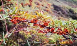 从外表来看,沙棘的棘刺较多且粗壮,嫩枝呈褐绿色,老枝是灰黑色,果实为球形、椭球形、圆柱形等,小小的一颗,在阳光的照射下,显现出黄色、橙色或者橘红色,十分可爱。浅尝一口,大多人都会皱起鼻子,感叹一句“好酸”啊!沙棘的花期是在4-5月,果期为9-10月。沙棘的果实密而小,因此一定要采取科学的方法进行采摘,以免沙棘资源遭到破坏。