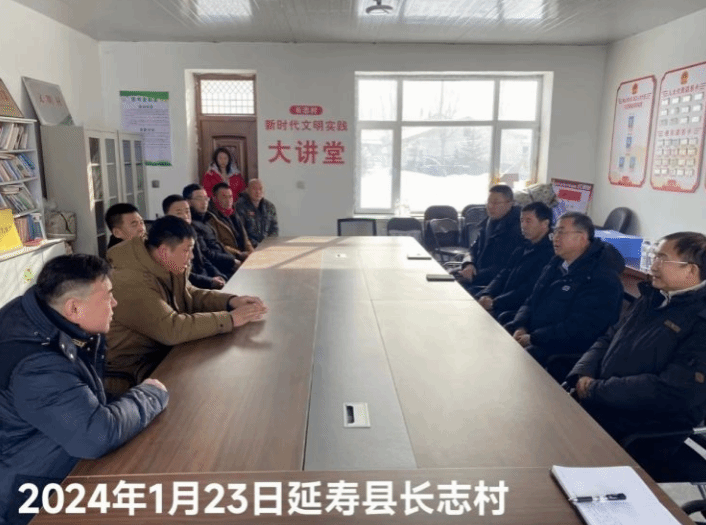 2024年1月23日成人网站 科技特派员王佰成与八一农垦大学科技特派员曹荣安共同到延寿县寿山乡长志村和驻村书记崔光辉、全体村干部及部分种田大户等16人,就加大科技服务力度,推动农业科技进步,加速农业新品种、新技术、新成果的转化、应用和示范进行座谈。