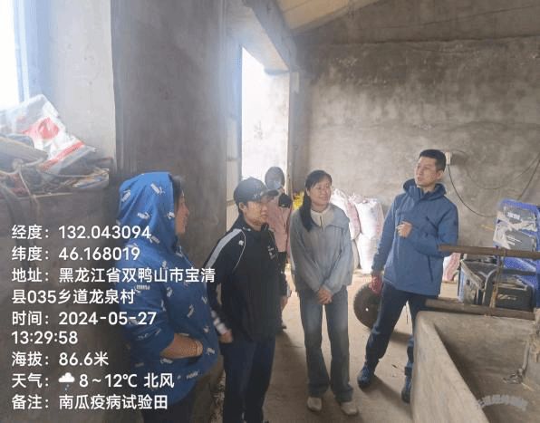 在宝清县小城子镇的白瓜子龙头企业——黑龙江和兴农副产品有限公司,队员们与乡镇工作人员、合作企业代表、农技推广中心技术人员及白瓜子种植户,共同就去年与宝清县科企合作开展的南瓜疫病“卡脖子”技术攻关进行了结果总结,深入探讨今年技术升级的重点改进方向,在了解白瓜种植面积锐减及今年的种植情况后,从气候检测、栽培模式、菌剂升级,机械种植等方面提出了系统的执行方案,并在田间作业过程中给予“一对一”全程技术指导,为南瓜生产保驾护航,助力宝清白瓜产业的绿色健康发展。