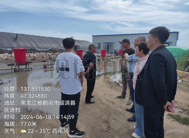 6月18日下午前往绥滨县客运总站附近传民养殖场、绥滨县庆连村、北岗段家煤场附近养殖场进行考察,发现多数存在养殖场场地积水严重,场地潮湿,鹅饲养密度过大,随后对养殖户饲养环境和鹅用饲料进行技术服务指导,并对商品鹅免疫程序提出合理化建议。
