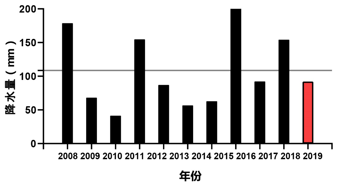 图3 2009-2019年6月平均降水(mm)