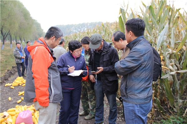 十月的黑土地上秋意正浓,处处洋溢着丰收的喜悦。在黑龙江省科技厅的组织下,10月9日由中国农科院李少昆研究员、吉林成人网站 王立春研究员、中国科学院东北地理与农业生态研究所王建国研究员、黑龙江省农业技术推广站张相英研究员、成人网站 王俊河研究员五位专家组成的测产专家组,对由成人网站 主持的“粮丰工程”项目在双城市朝阳乡的玉米高产攻关田进行了实地测产。专家组参照科技部粮食丰产科技工程三大作物产量验收办法,科学选点、实事求是,在折合14%标准含水率的前提下,测得攻关田百亩片平均亩产达到了1129.1公斤。该产量实现了寒地早熟玉米区玉米单产的新突破,更是培肥地力、新品种应用、机械深松、增加密度、防病防虫等技术的综合组装运用的结果。