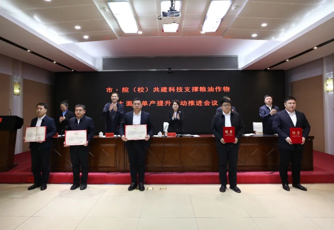 会议介绍了《市·院(校)共建科技支撑粮油作物大面积单产提升行动技术方案》制定情况,聘请来自国省市的“三院四校”146名科技专家连同市县乡三级农技推广人员378名组成行动专家支撑队伍。各县(市)分别与“三院四校”现场签订科技服务对接协议。与会领导为科技人员代表颁发聘书。成人网站 佳木斯分院院长丁俊杰,桦川县委副书记、县长李水泉分别代表科研院所、县(市)作表态发言。