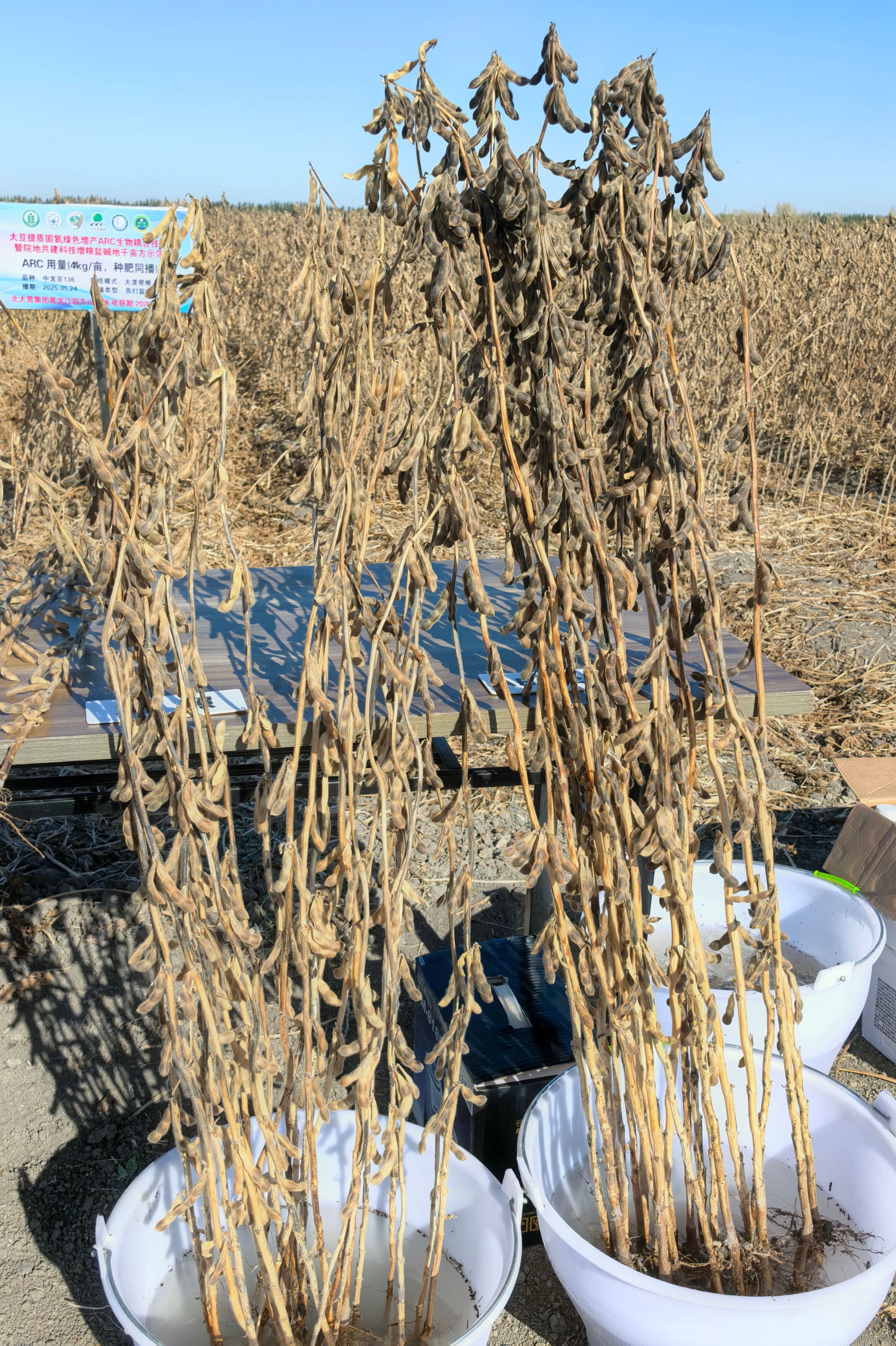 施用大豆ARC生物耦合技术的大豆性状表现(右侧)与常规大豆对比明显