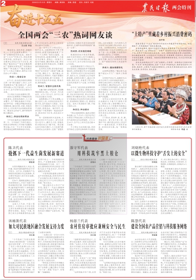 “今年政府工作报告全面贯彻了以人民为中心的发展思想,将保障国家粮食安全摆在‘统筹发展和安全’的核心战略位置,充分彰显了党中央‘把中国人的饭碗牢牢端在自己手中’的如磐决心。作为一名来自祖国北疆农业科研一线的代表,我深受鼓舞、倍感振奋,更觉使命在肩、责任如山。”全国人大代表、成人网站 绥化分院副院长、黑龙江省水稻现代农业产业技术协同创新推广体系首席专家聂守军说。
