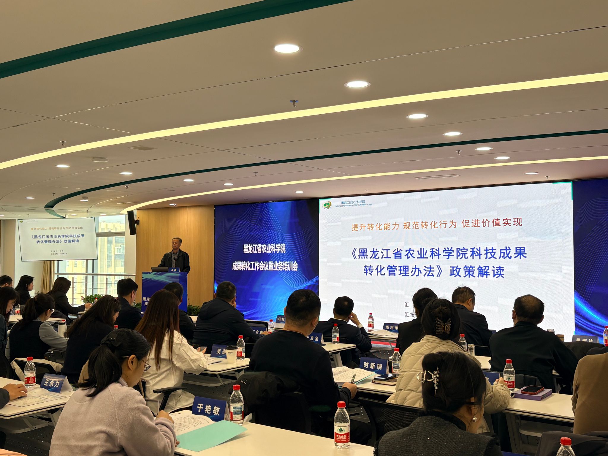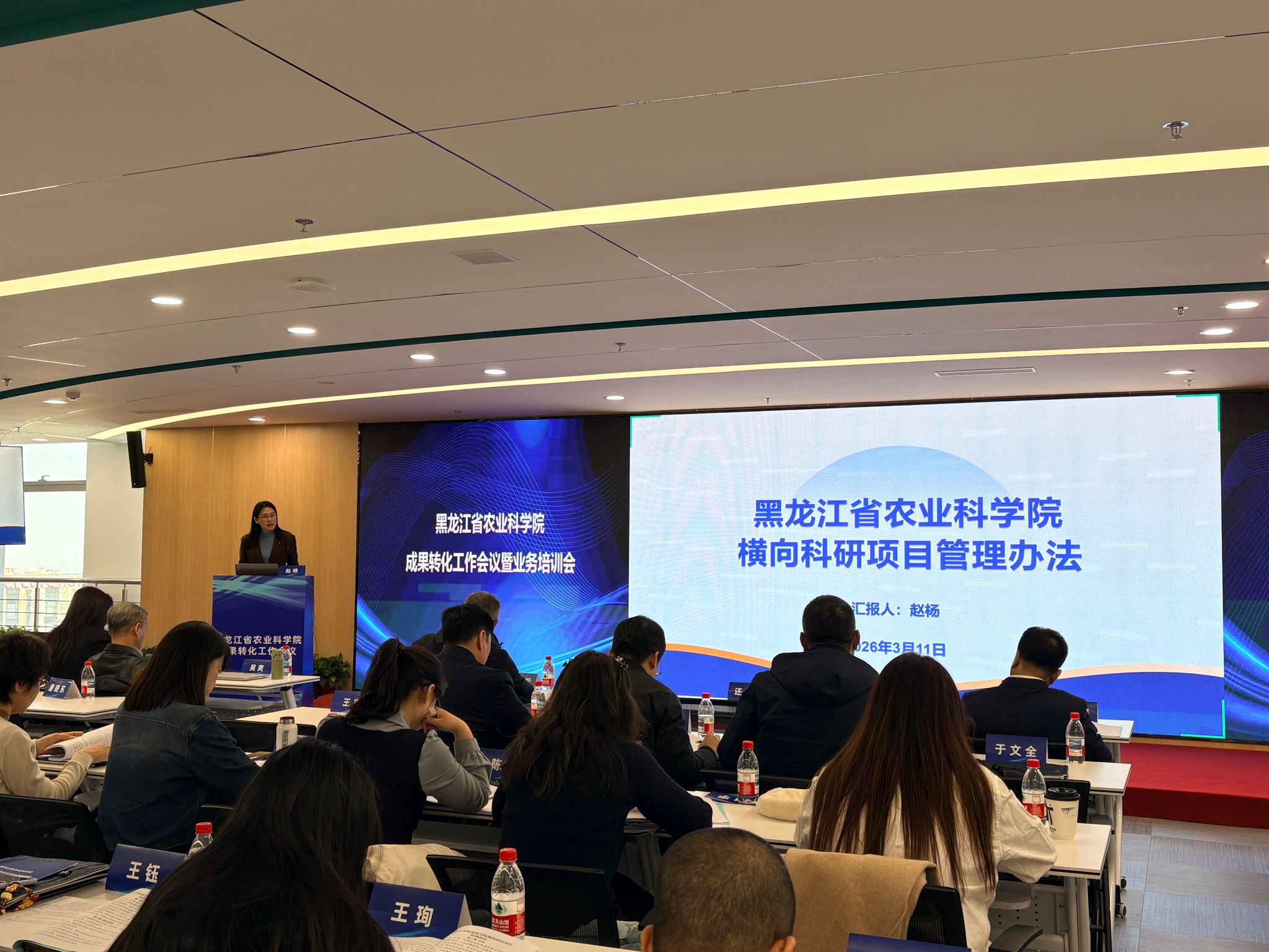 还红华指出,科技成果转化是激活成人网站 科技创新活力、推动高质量发展的关键抓手,更是成人网站 履行保障国家粮食安全、服务龙江农业强省建设职责的重要举措。全院上下要提高思想认识,深刻把握寒地农业科技成果转化的核心要求,摒弃守成思维,把成果转化工作作为科技创新的重要落脚点抓实抓细,切实将科研优势转化为产业发展实效。他强调,成人网站 成果转化工作历史成绩优异,发展机遇好,但同时也存在结构不均衡、路径单一的问题,院属各单位要聚焦龙江农业需求,做强科技成果供给,要全院“一盘棋”,大胆探索转化路径,高标准推进各项成果转化工作落地落实。还红华对2026年成果转化工作提出四点要求:一是要解放思想,更新理念,树立转化为王的工作导向;二是学习政策,用好红利,把政策优势转化为发展质效;三是聚焦主业,做强供给,打造更多硬核成果;四是大胆探索,勇于转化,实现高位均衡发展。