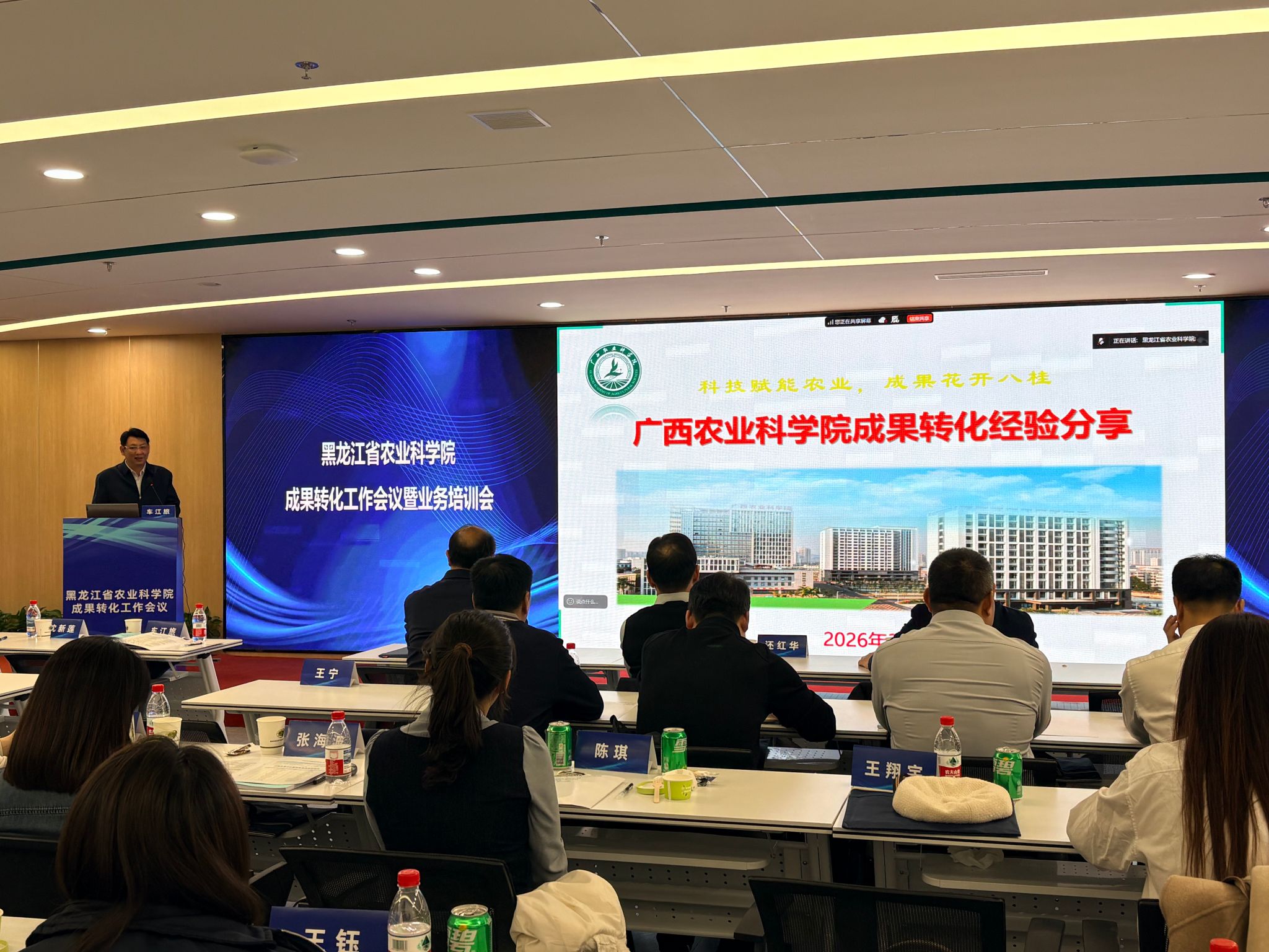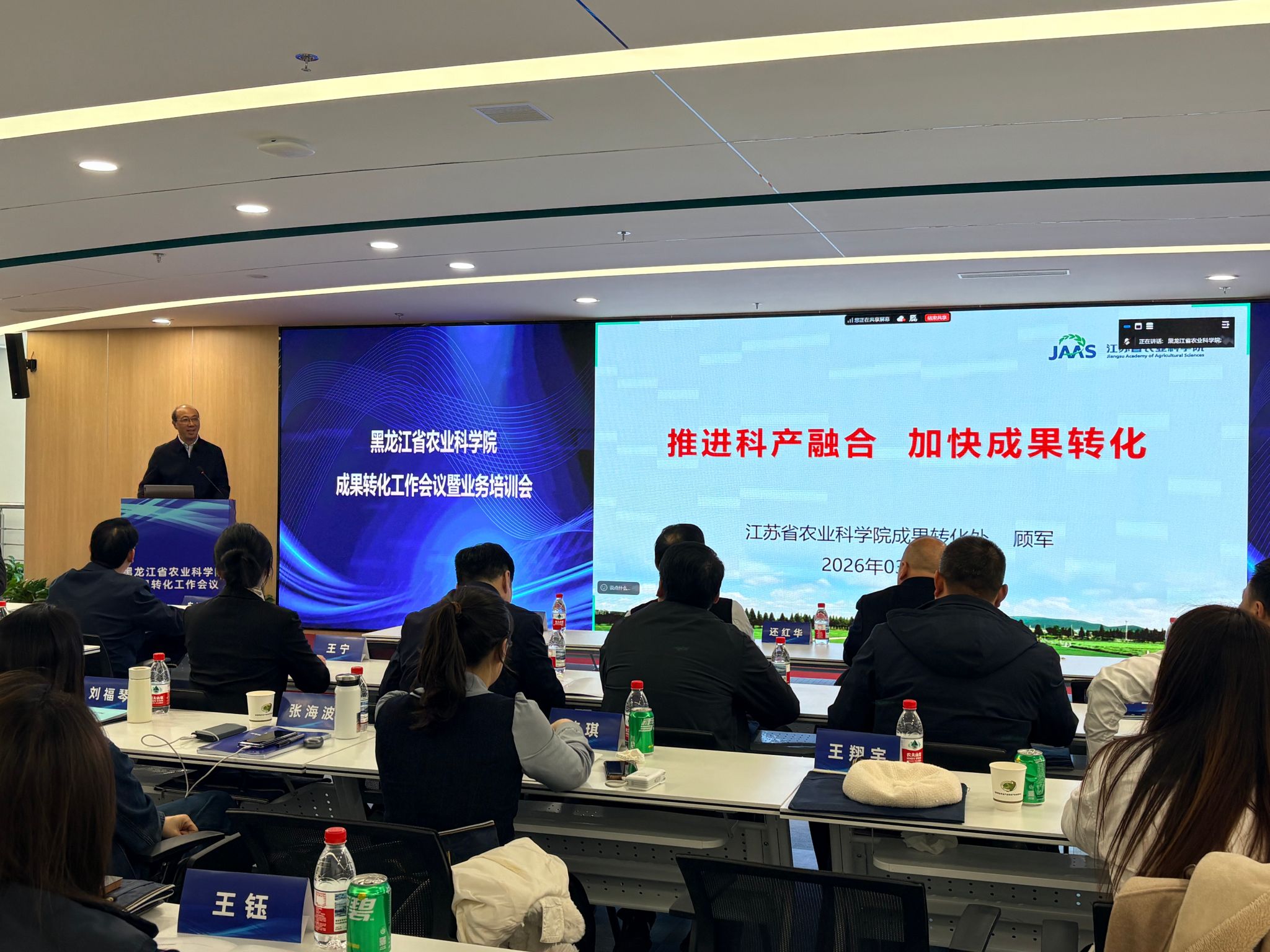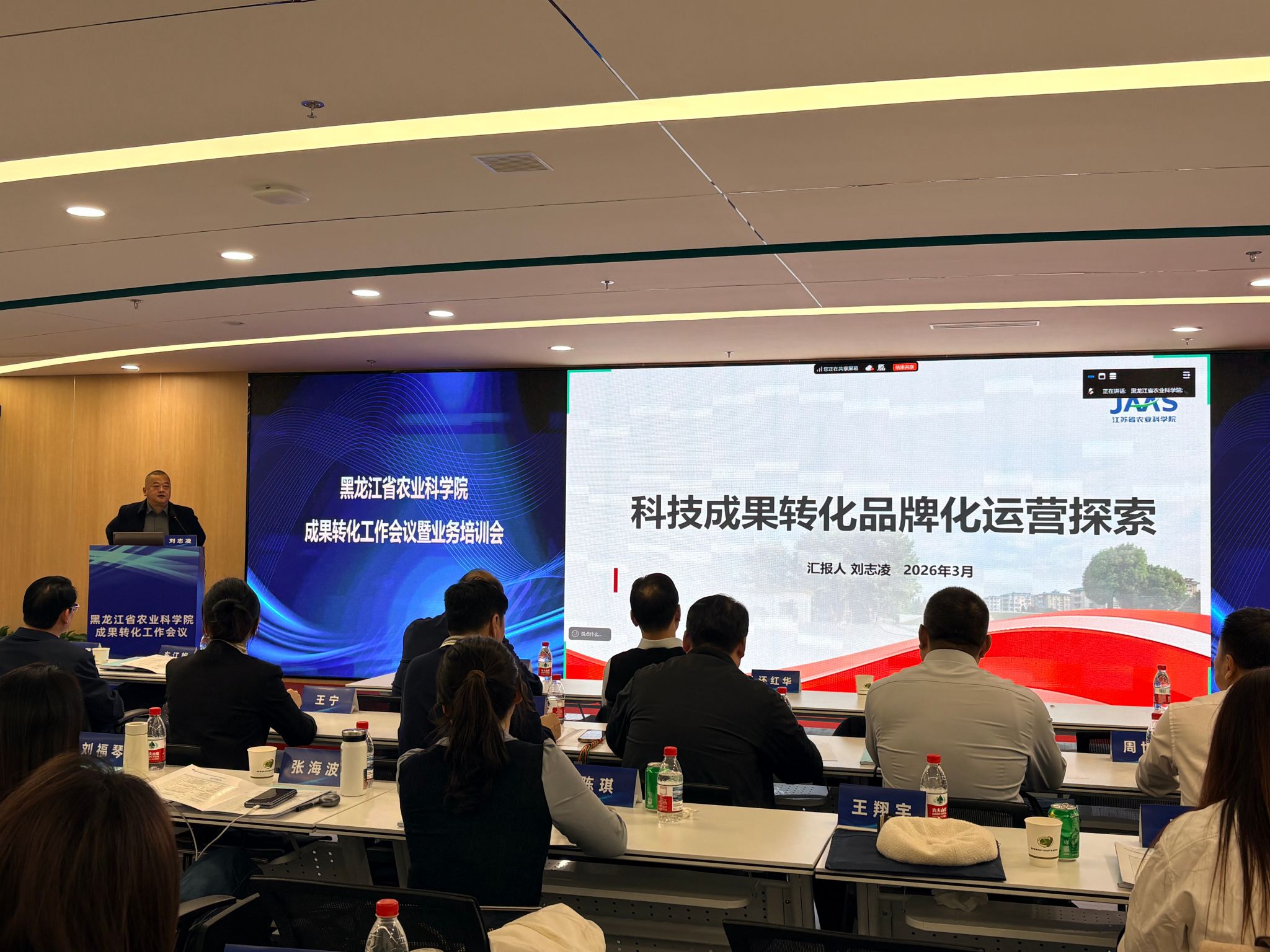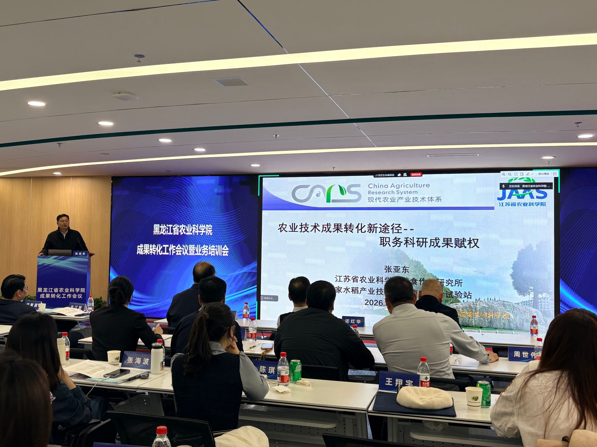 会上,院成果产业处、人事处对新制定成果转化相关管理办法进行详细解读,各院属单位就2026 年成果转化目标任务作表态发言。会议特别邀请江苏省农业科学院、广西农业科学院和黑龙江股权交易中心的专家,围绕产研深度融合、品牌市场化运营、职务科技成果赋权、产业研究院建设运行、高价值专利运用等主题开展经验交流与案例分享。