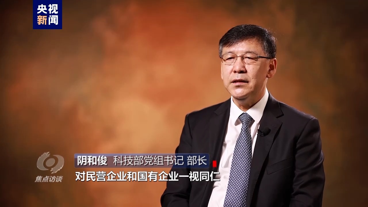 科技部党组书记、部长 阴和俊:坚持“两个毫不动摇”,对民营企业和国有企业一视同仁,谁有能力干就让谁干,支持有能力的企业牵头承担国家重大技术攻关任务,充分发挥企业“出题人”“答题人”“阅卷人”的作用。