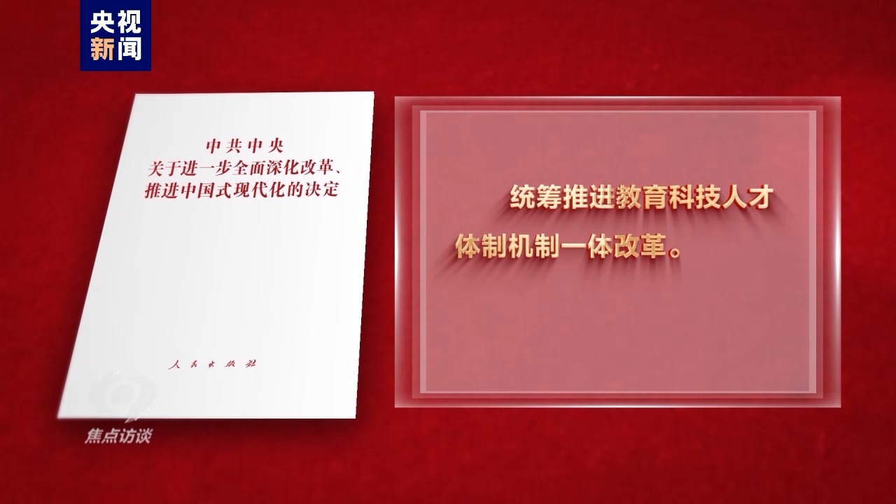 《决定》把创新摆在突出位置,鲜明提出“统筹推进教育科技人才体制机制一体改革”,这是继党的二十大对教育、科技、人才进行专章部署后,又一项重大战略部署。