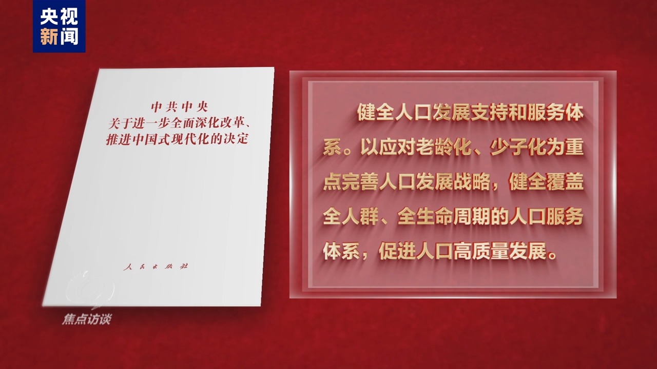 中国社会科学院国家高端智库首席专家 学部委员 蔡昉:中央提出了人口高质量发展支撑中国式现代化,这个高质量发展就有很多内涵。比如说保持合理的生育水平,适度的人口规模。我们从全生命周期,全人群来构建人口支持服务体系、政策体系,因此必须是各个部门协调推进。一块是人的健康,还有一部分就是来自教育,扩大托育一体化,到社会提供的环境氛围,我们人社部门,让生育休假成为一项制度。