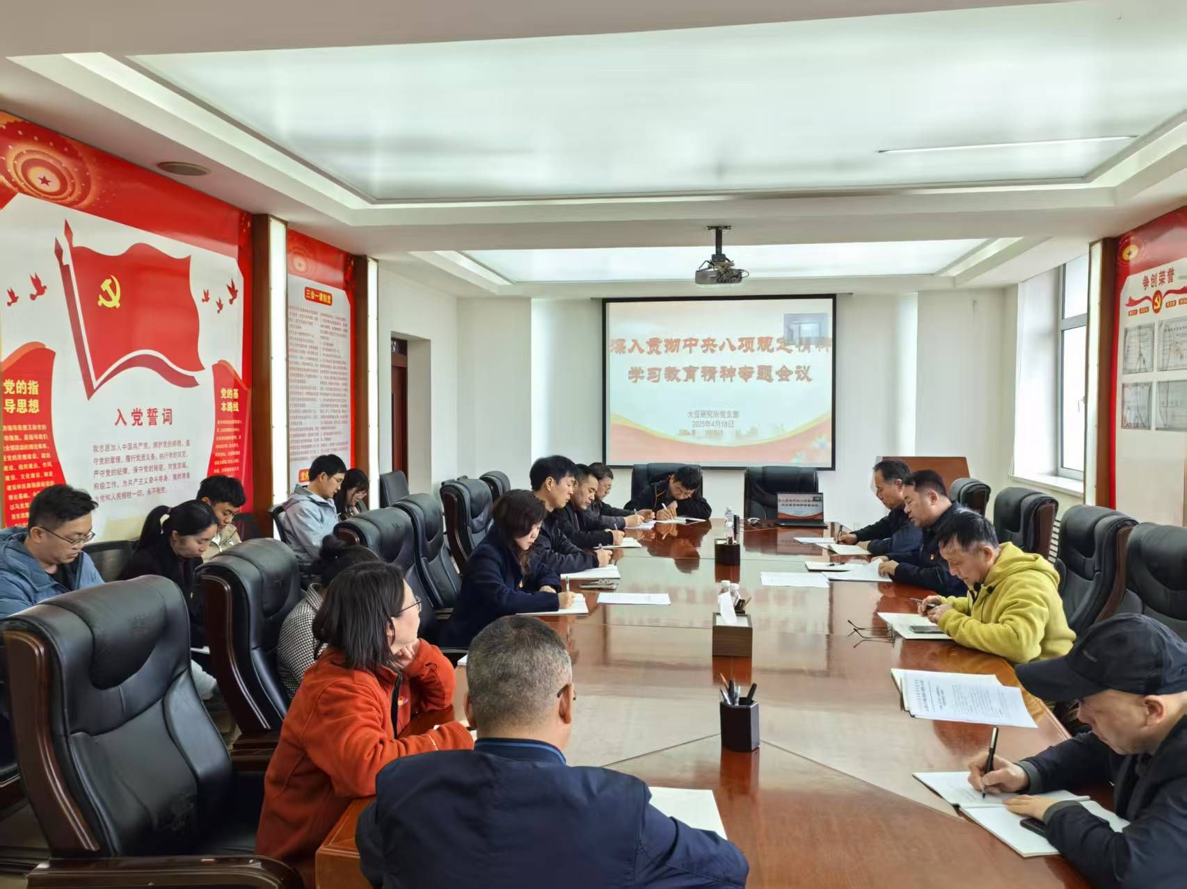 4月18日,成人网站 大豆研究所党支部召开全体党员大会,聚焦违反中央八项规定精神典型案例展开深入剖析讨论。